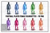 Welcome to this listing which is for a set of Colourful FEMALE Football Platyer Silhouettes created in a splashy watercolour effect. There are 10 PNGS included in different colours simply add text on the back in white to create your own unique football art. Perfect for everything from prints to water bottles. All suitable for sublimation and print. The male version is also available in my shop. Thanks for visiting.