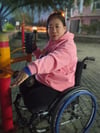 Beryl: Dak Amputee Girl - Using a wheelchair to try out fitness equipment