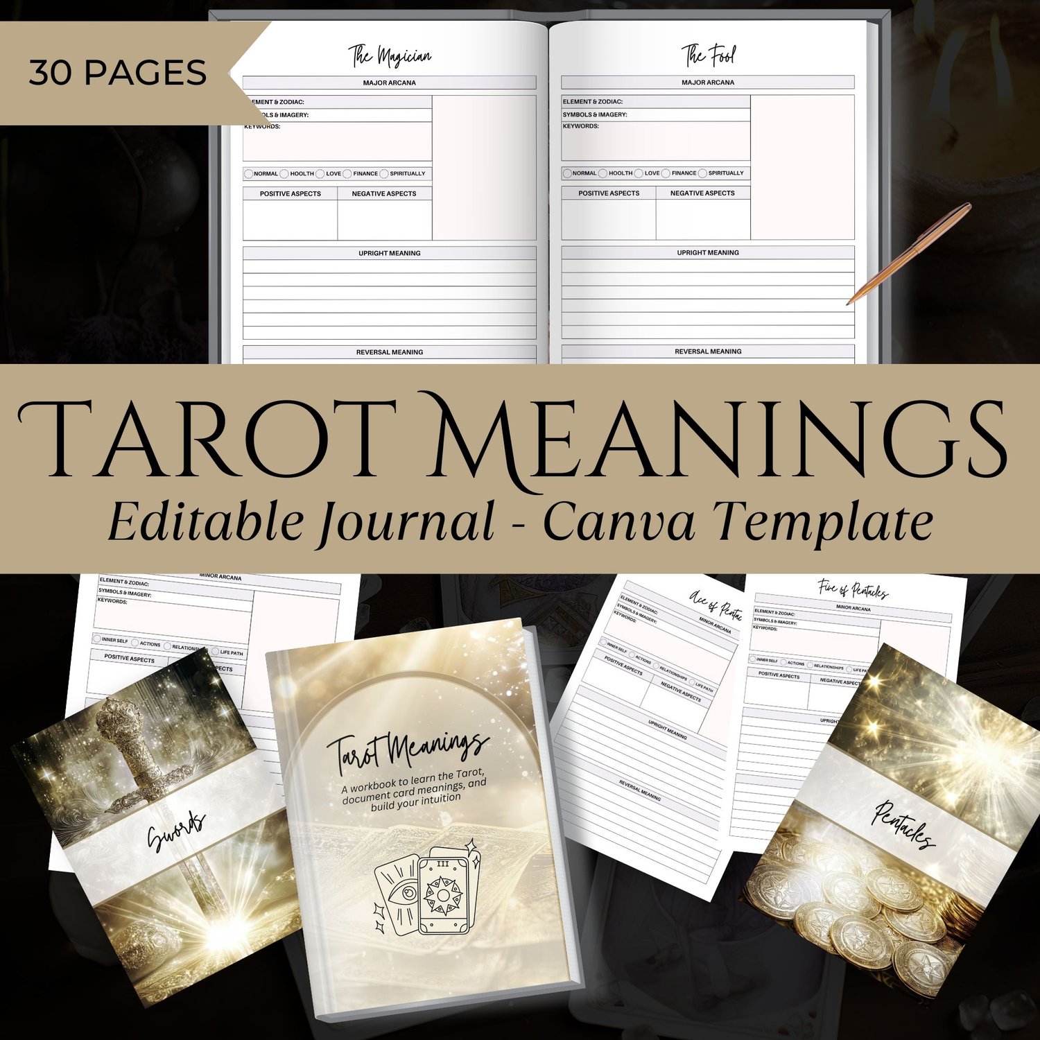 Tarot Meanings Workbook Canva Template