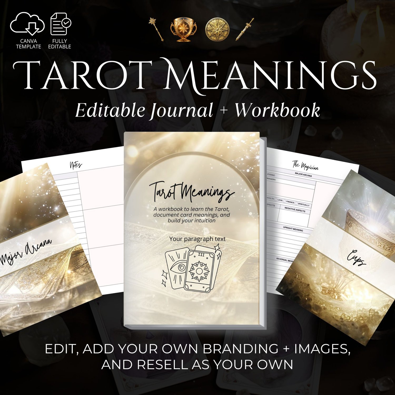 ✨ Instant Access: Get immediate access to the editable Canva template to start creating your unique tarot workbook.