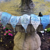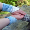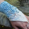As an Admiral butterfly lights upon the trickling waterfall in a garden fountain, Milady Admiral fingerless gloves elegantly portray the scene. Soft as a butterfly’s fluttering wings, Milady Admiral graces hands with loving stitches. Admiral butterflies sparkle upon your wrist while the added sheen of glass beads is certain to brighten any day. Drop stitches invite all butterflies to take flight. This gentle touch of the butterfly’s wings warms your heart. With Admiral’s kisses, enjoy these stitches.