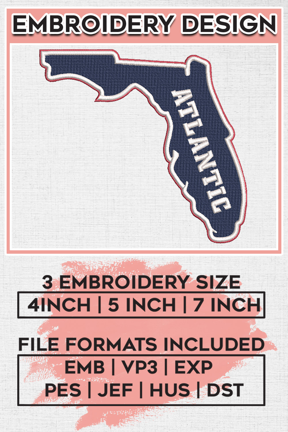 Florida Atlantic Owls NCAA Team Map Logo Embroidery Designs, NCAA Florida Atlantic Owls Machine Embroidery Files, NCAA Logo embroidery designs, Ncaa Florida Atlantic Logo, Digital Download
