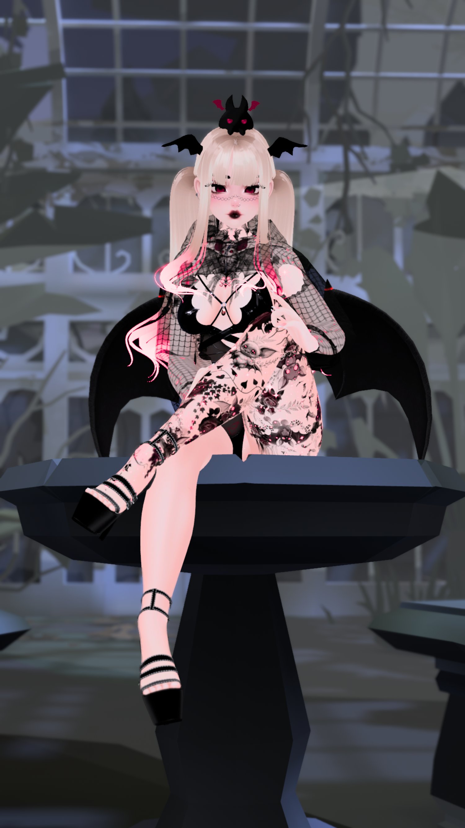 Accessories: Bat wings, bag, piercings, face chain, bat buddy on head
