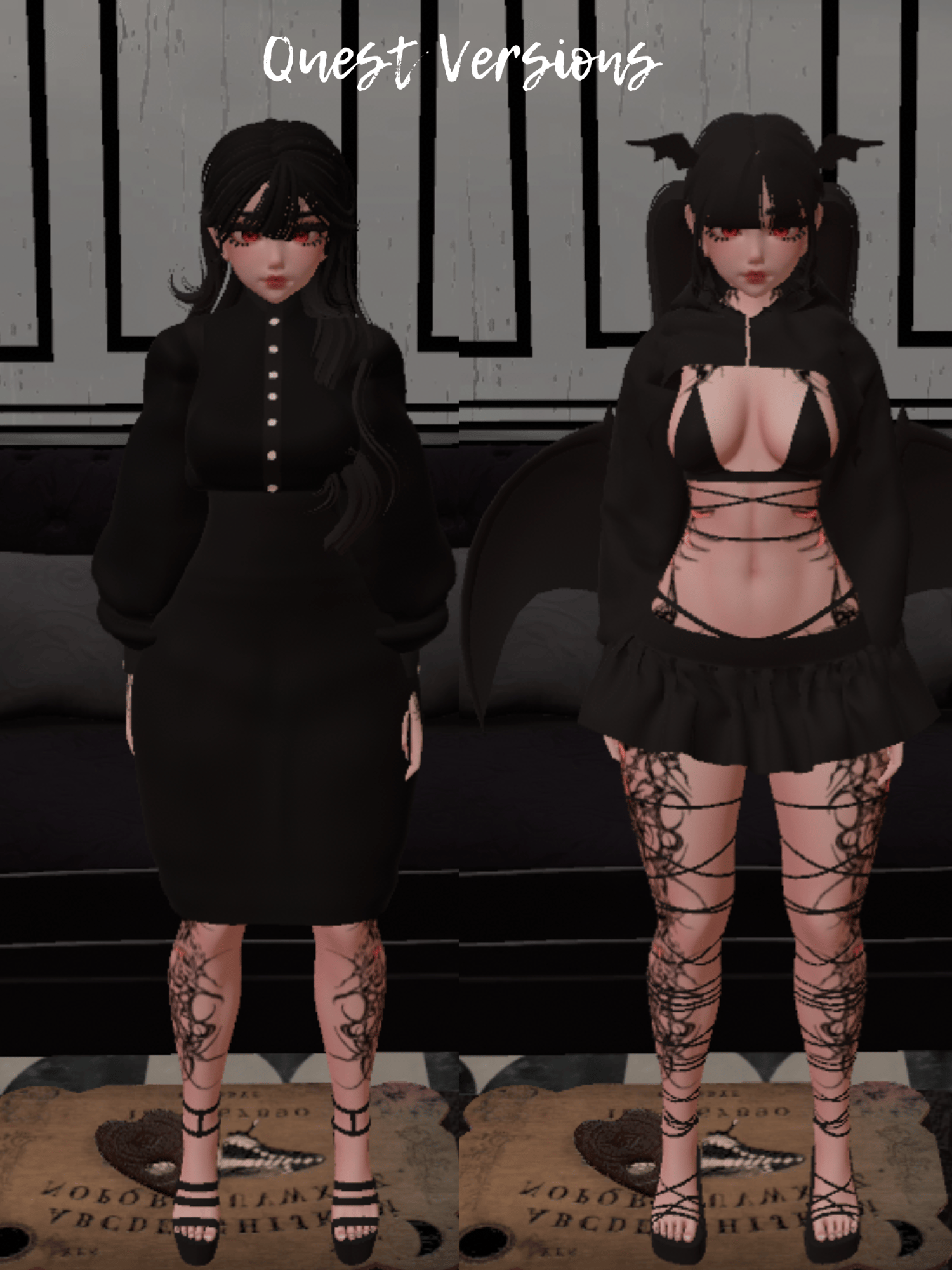 Special thank you to Dusklightsthestars and Tommigatchi for modeling for photos, MaskedTearZ for the showcase video, and to Momma Euthalia (gumroad.com) for helping me with the quest conversion!