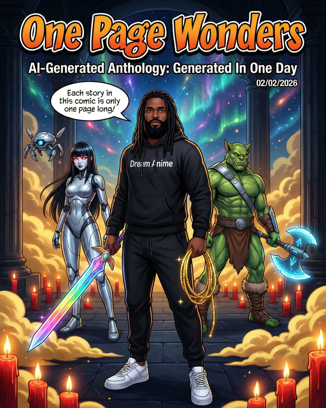 This is an anthology of 5 one-page comics, all created within a single day (Seven images total).