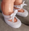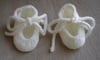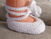 These baby ballet shoes are knitted in garter stitch and have an i-cord ankle/leg tie.