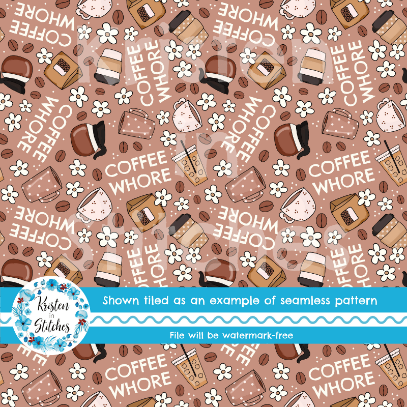 Coffee Whore Sarcastic Sweary Seamless Pattern