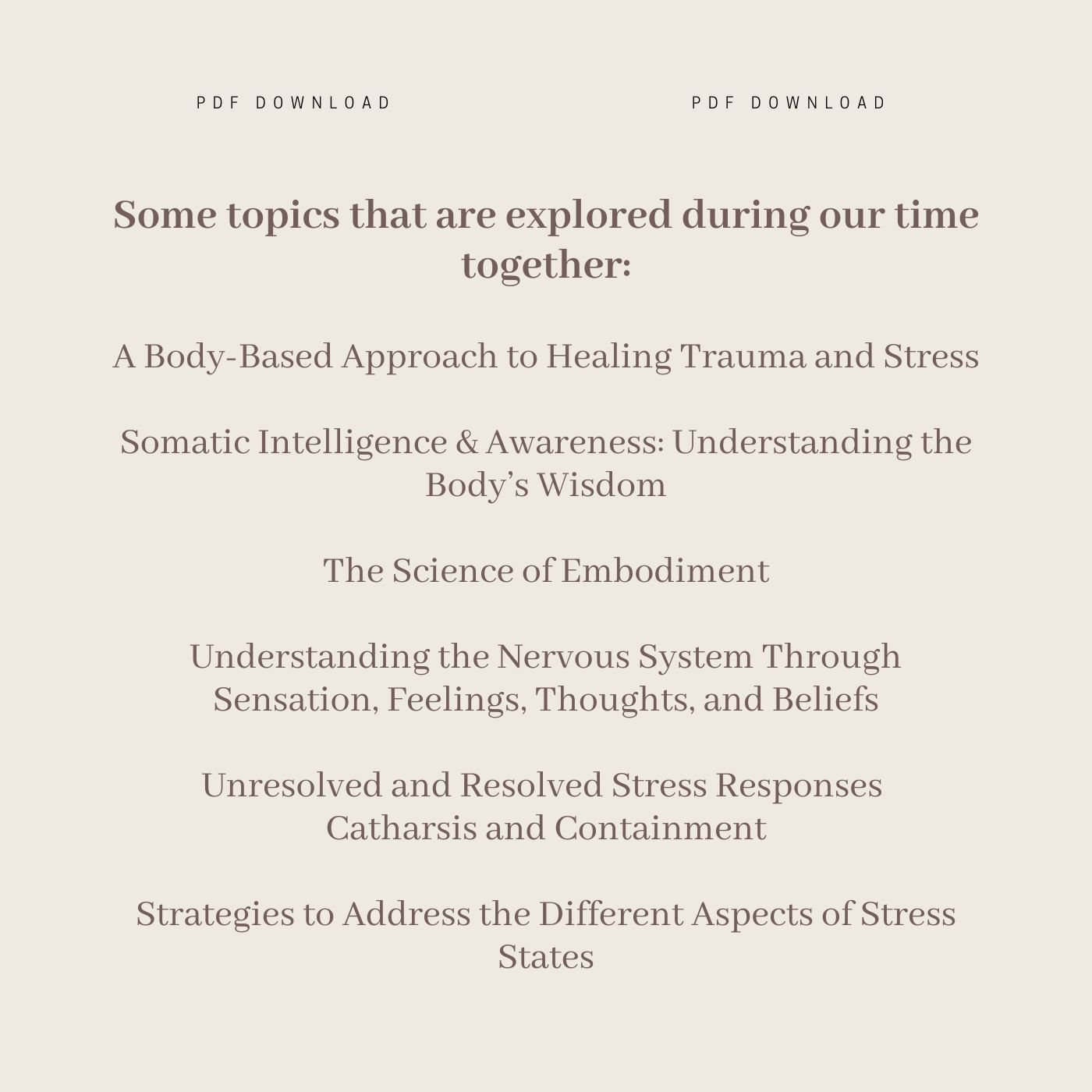 ✔ Those who want to deepen their awareness of their nervous system—learning to recognize its signals, cues, and patterns as a pathway to resilience and well-being.