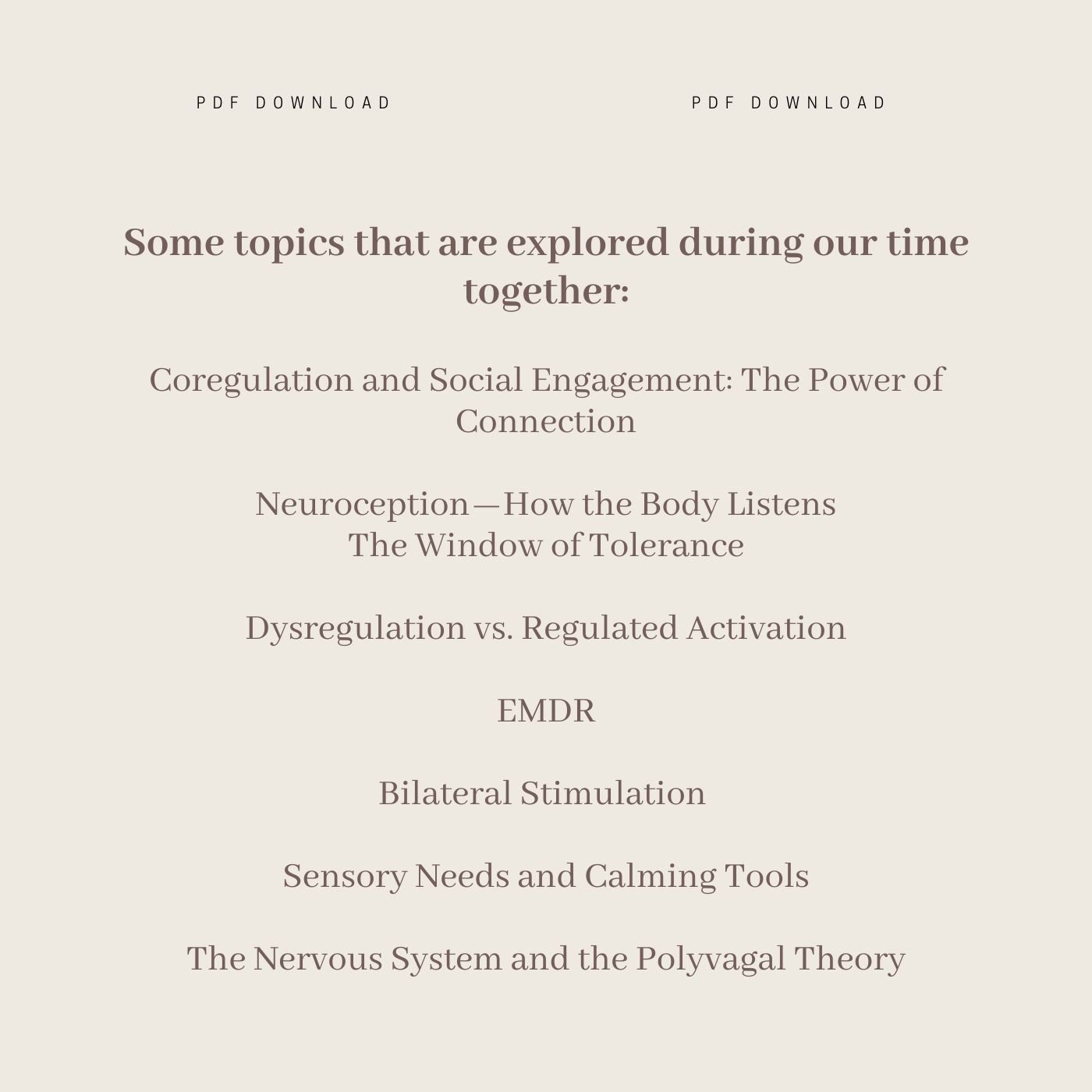 ✅ Self-Regulation & Coregulation Tools – Explore techniques to soothe, ground, and support your nervous system, whether through self-regulation or connection with others.