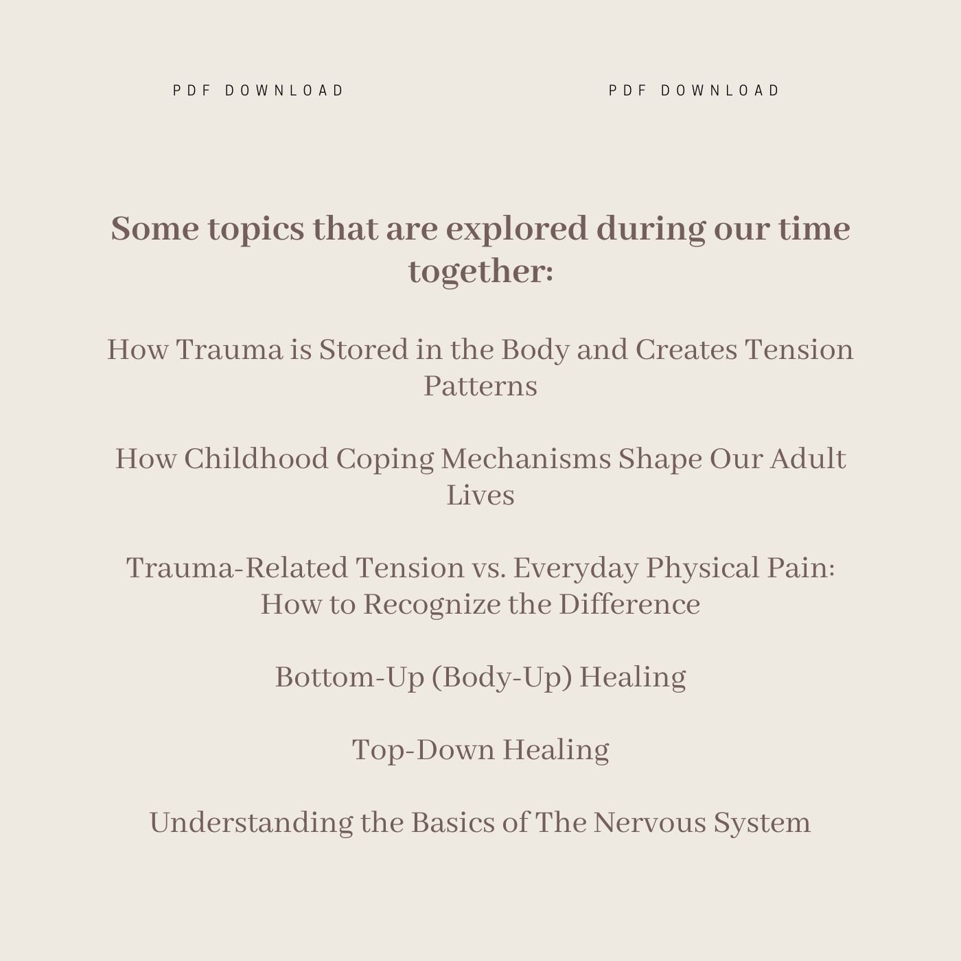 ✅ The Science of Trauma & Stress Responses – Understand how trauma is stored in the body, why tension patterns form, and how to safely release them without overwhelm.