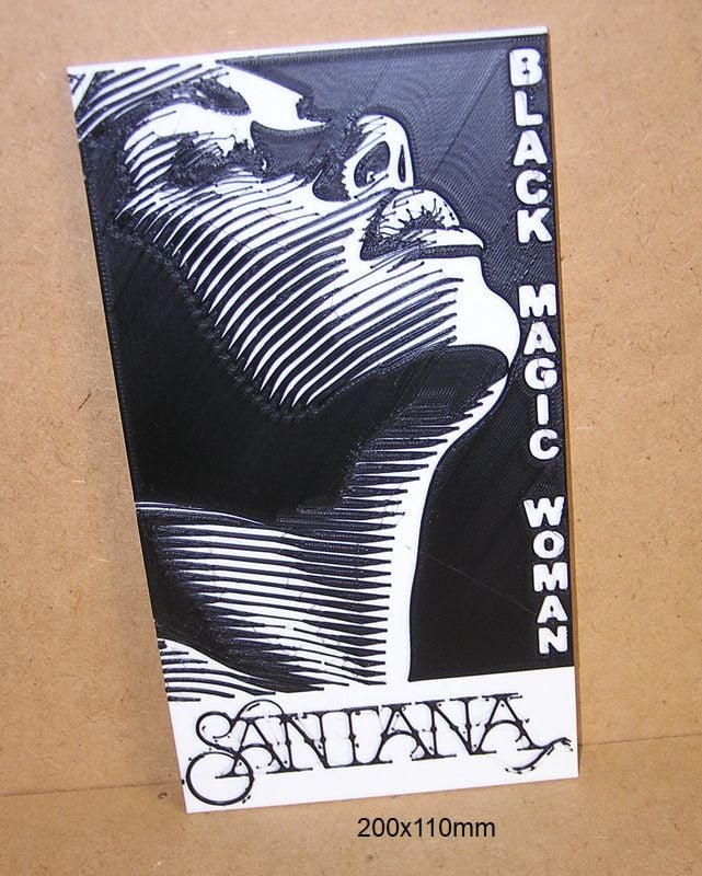 Santana Poster, Sign, Logo of the group, Band of music, these STL and Gcode files have been created to be printed in various colors with any FDM type printer. The color changes have been made with the Elegoo Neptune 3 Pro printer, but they can be printed on any printer.