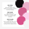 + Detailed Hex Codes, RGB, and CMYK values for each color