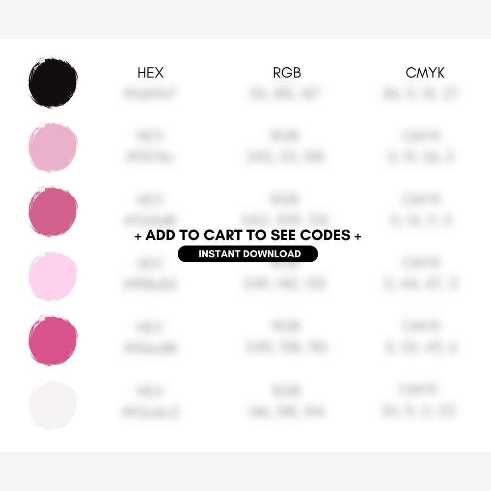 Unleash a world of whimsy and charm with our Bubble Gum Bats Color Palette, the ultimate choice for your Halloween-themed branding and design projects. This cute and playful collection features an enchanting blend of black and pink shades, perfect for capturing a fun yet sophisticated vibe. Dive into the muted pink of classic rose, the depth of dusty magenta, and the ethereal misty fog of light gray, all meticulously curated to create a harmonious color scheme. Whether you're designing shop banners, logos, or eye-catching social media graphics, these swatches are compatible with Canva and Procreate, ensuring seamless integration into your digital and print projects. Our palette includes exact Hex Codes, RGB, and CMYK values, making it an ideal choice for consistent branding across your website and marketing materials. Elevate your creative endeavors with this delightful blend of hues and let your brand stand out in the most captivating way!