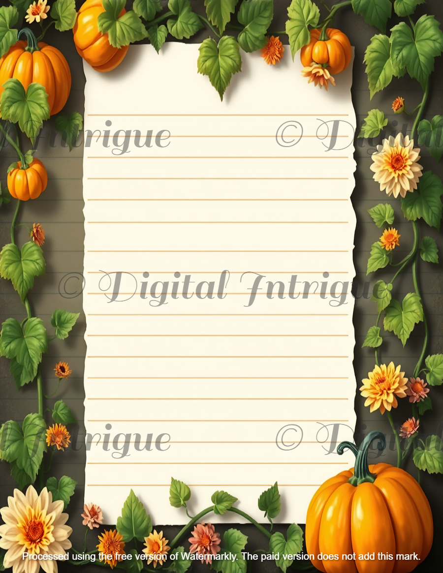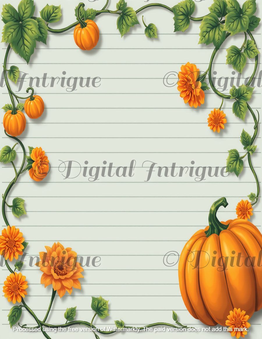 - Multiple designs featuring lined paper with hand-drawn pumpkins