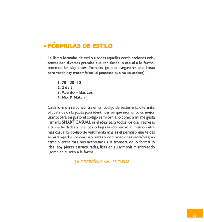 1. Fórmulas de estilo 2. Colores por estación 3. Consciencia de la imagen 4. Closet ideal