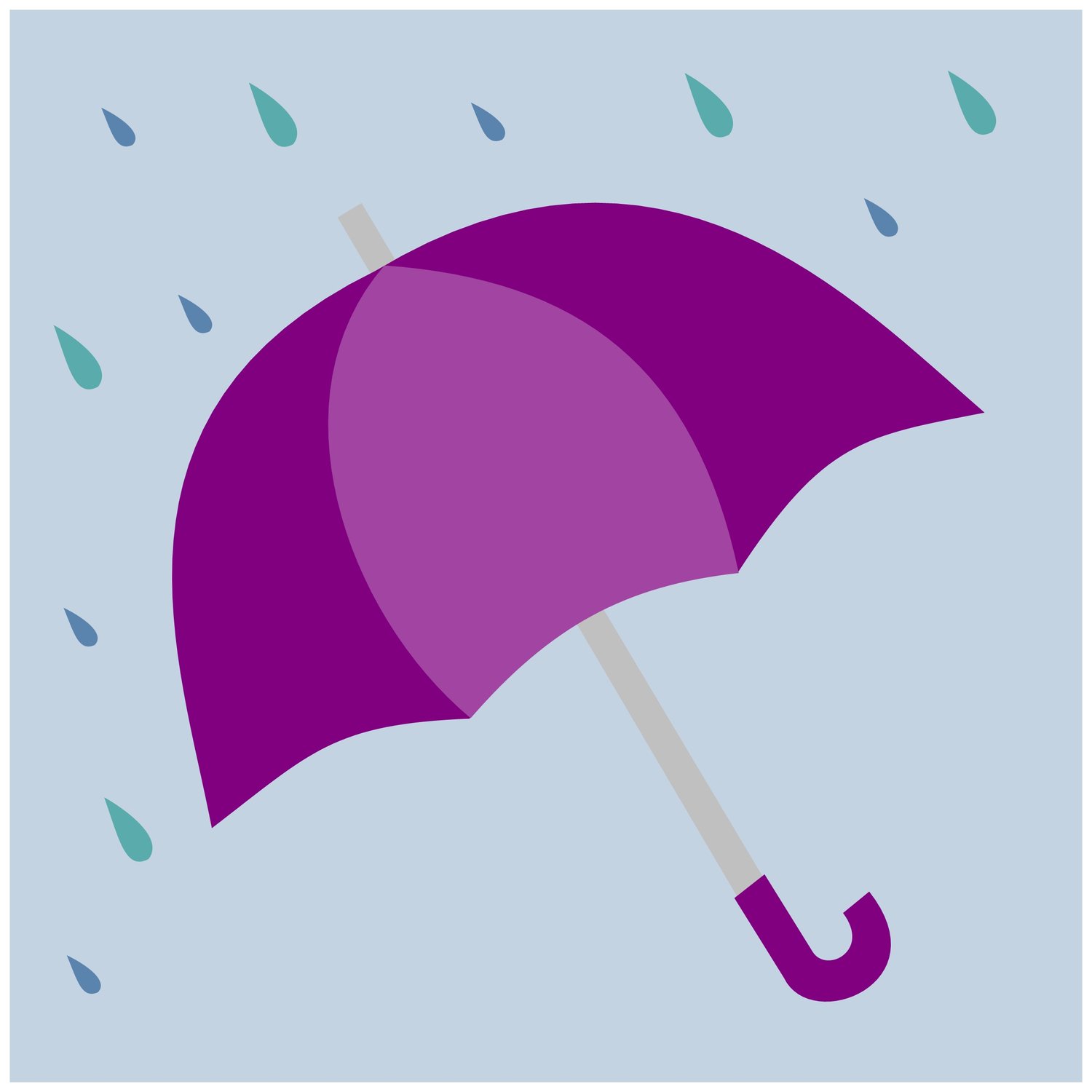 This block celebrates a spring rain with a happy umbrella and a soft rainstorm.