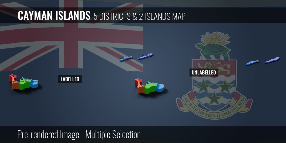 Cayman Islands - 5 Districts & 3 Islands Map (3D + Pre-rendered Images)