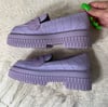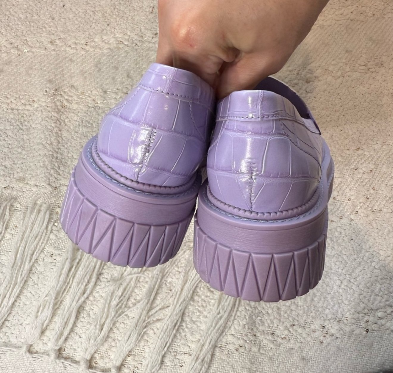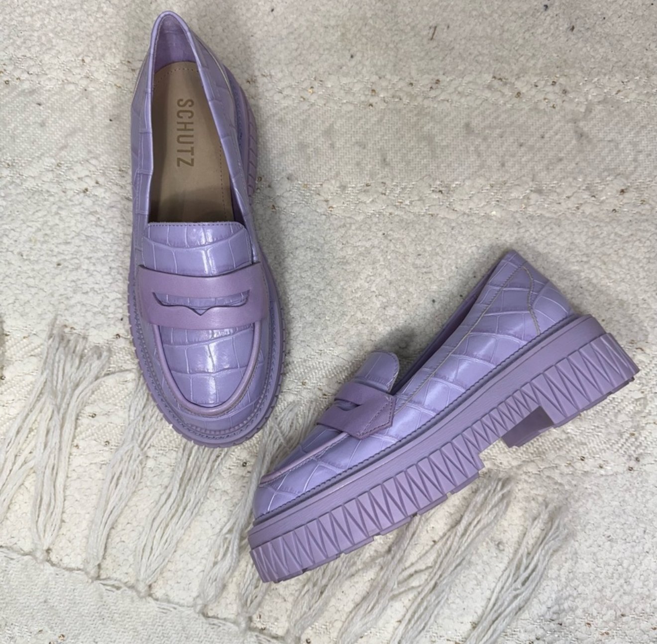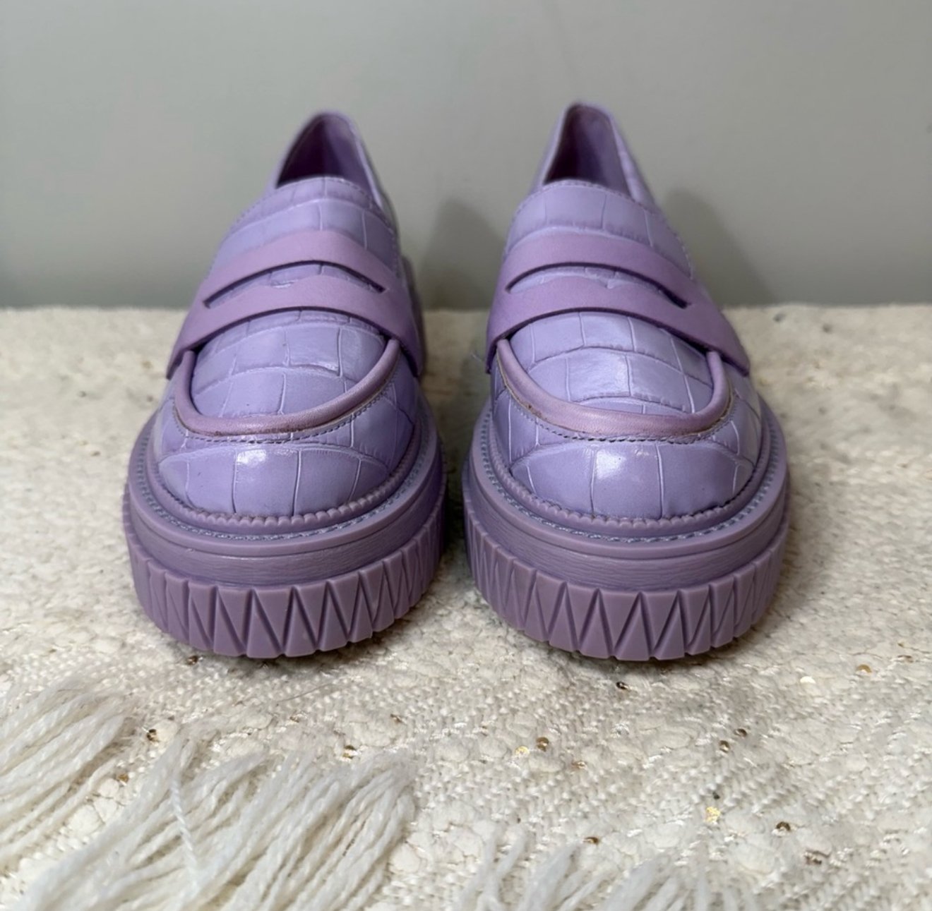 Schutz Purple Croc Embossed Leather Platform Penny Loafers - size 6