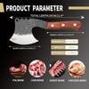 2.INTEGRATED FULL TANG HANDLE - You will have the most comfortable handle and unrivaled massive cutting performance! The handle and the 5mm thick blade of the cleaver knife for meat bone cutting are integrated without soldering, which is firm and durable to eliminate broken handles. The superbly balanced, non-slip grip makes chopping more efficient and easy. Even after prolonged use, you will not tired.