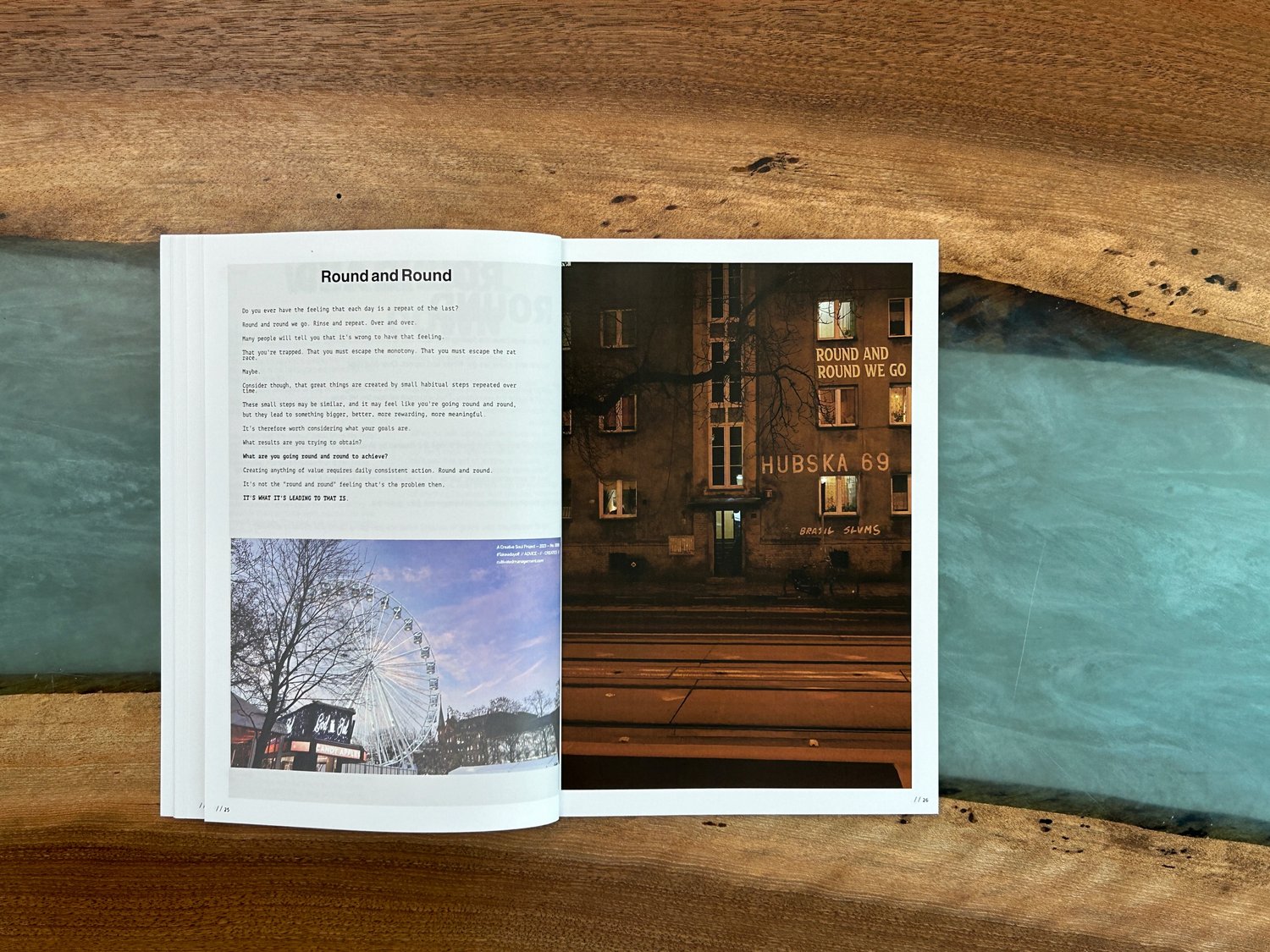 Each chapter is accompanied by two unique posters – one designed, one gritty "urban graffiti" – reflecting the dual nature of our work experiences.