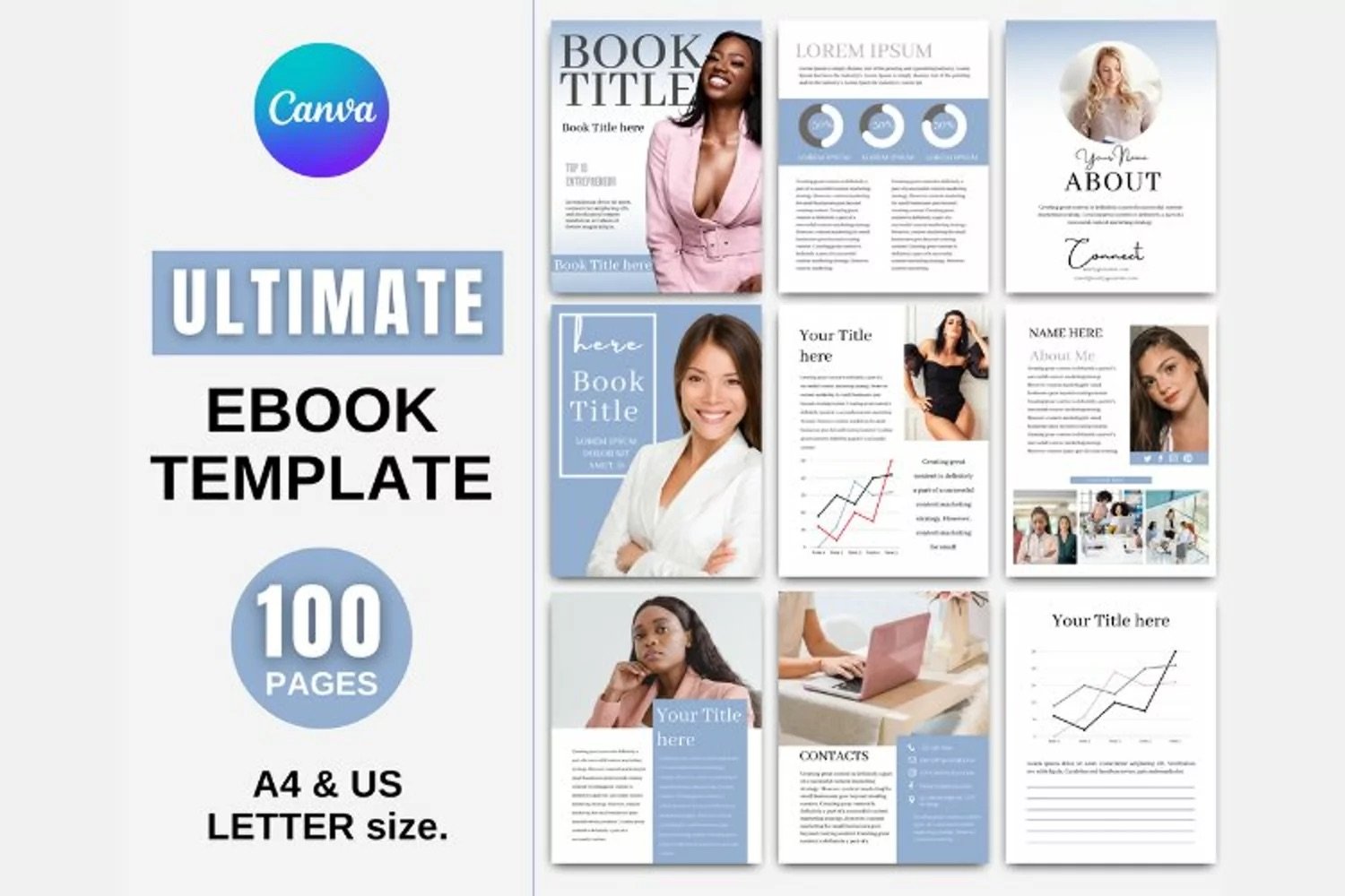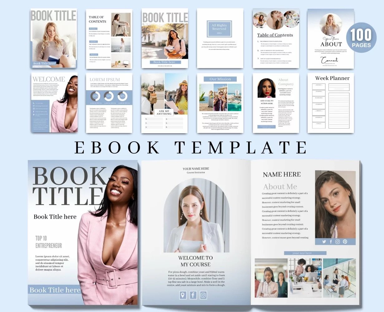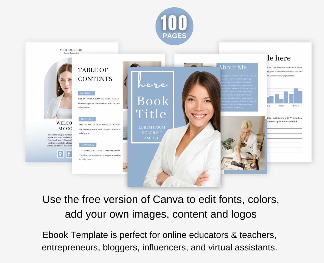 100 pages eBook Template for Canva (Blue)