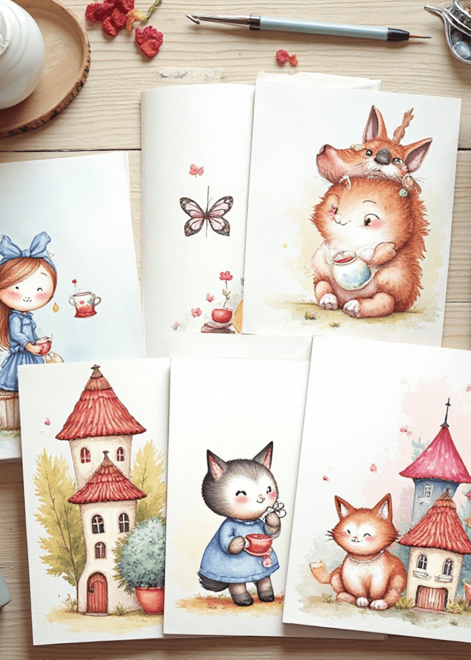 Whimsical Tale Art Cards Bundle 60 Enchanted Watercolor Greeting Cards & Nursery Prints - Digital Download