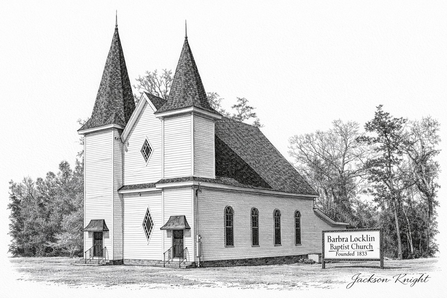 Barbra Locklin Baptist Church – Pen & Ink Illustration (Printable Download)