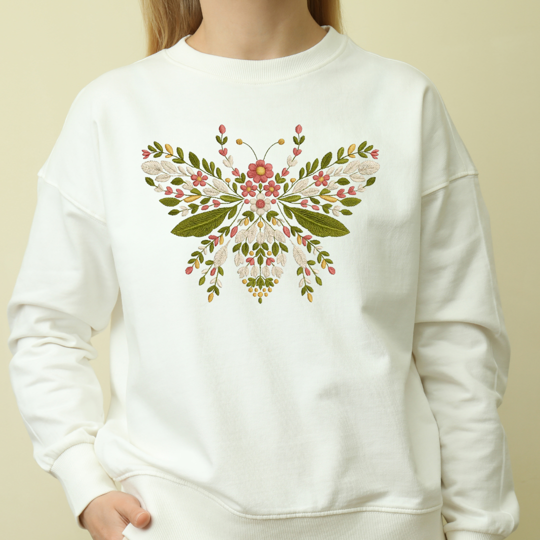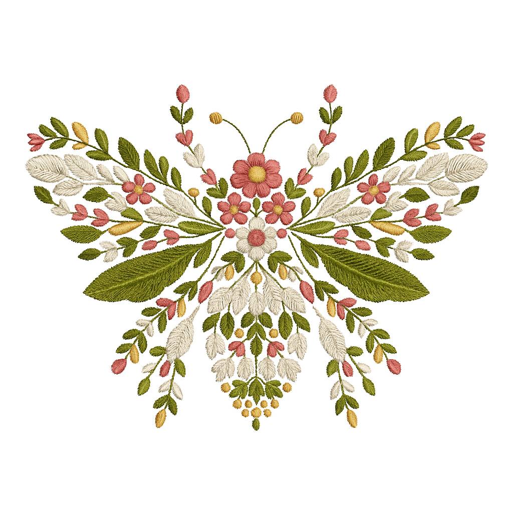Floral Butterfly Embroidery Design: Boho Insect Pattern (Digital Download)
