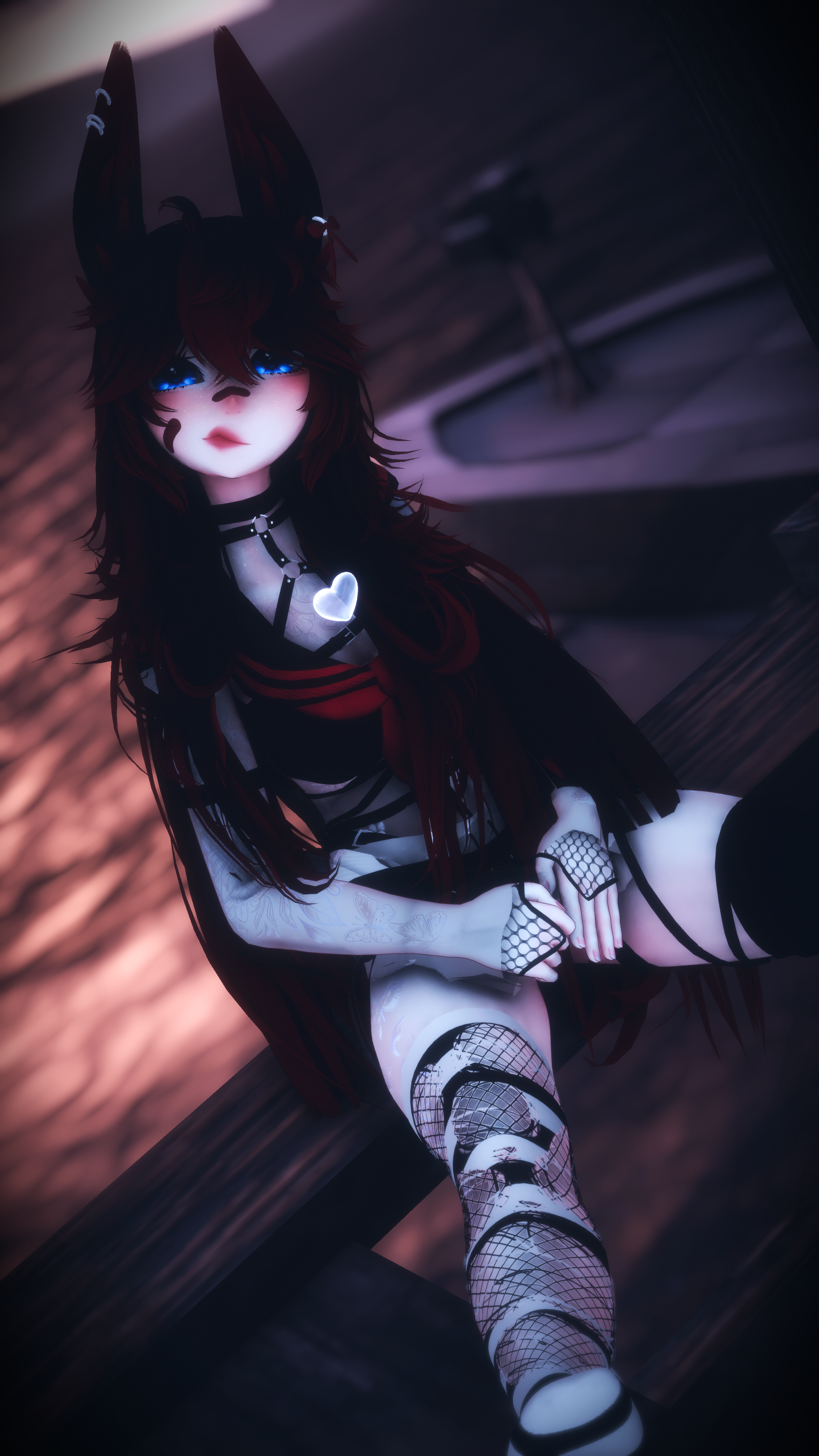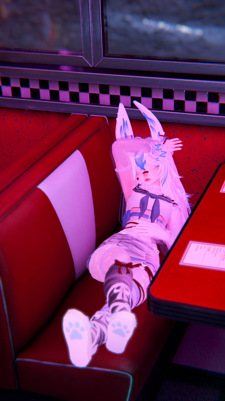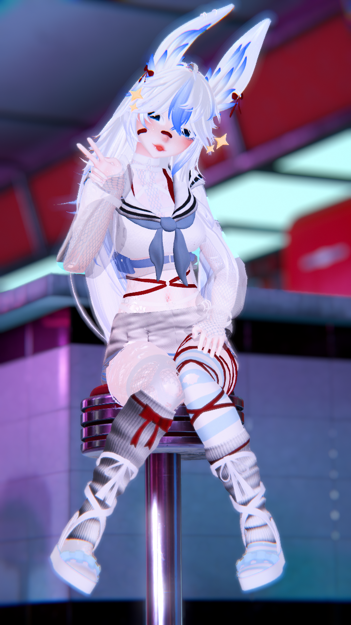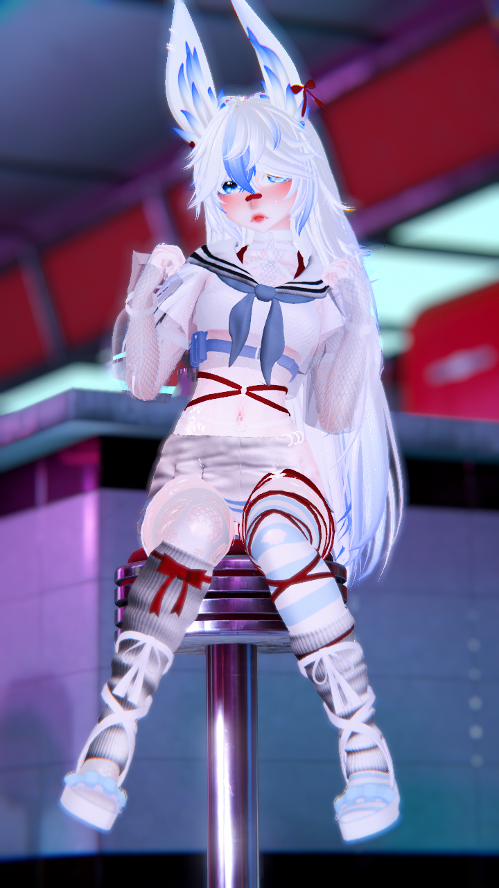 Items: Vape (Works! put to your mouth to use), Knife (Grabbable, hold in your mouth or hands), Paw flow toys, Bunny Plushie, Flower Basket, Inner Heart, Gesture emotes (Facial addons with hand gestures), Likes Counter (boop the nose to like!)
