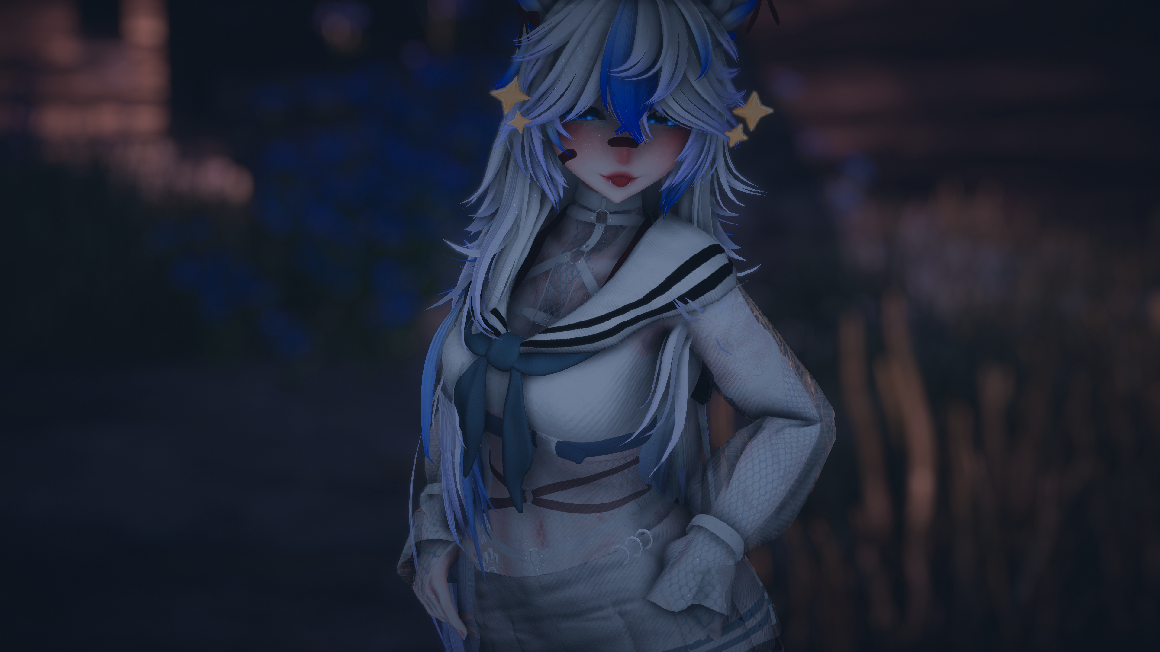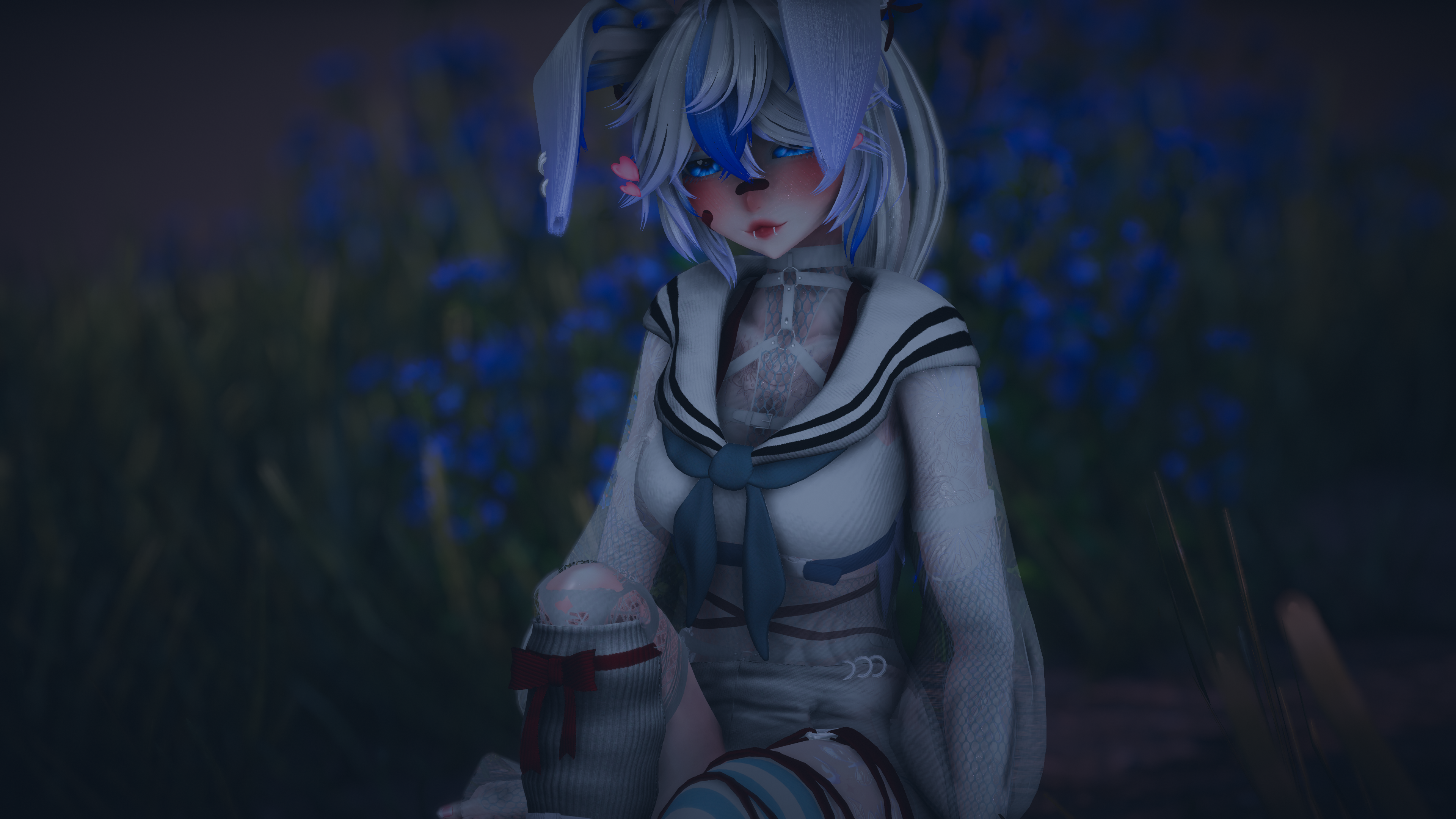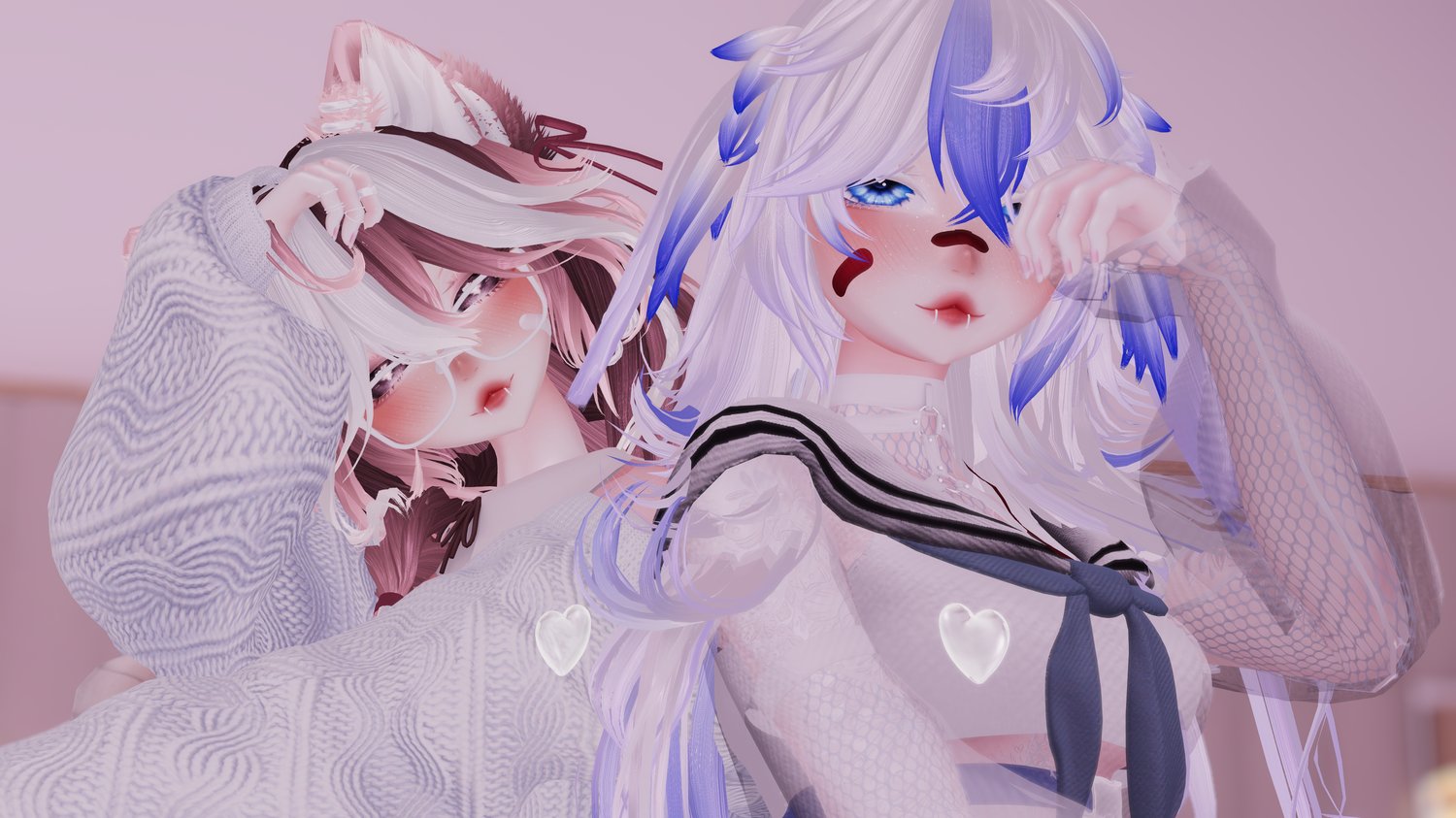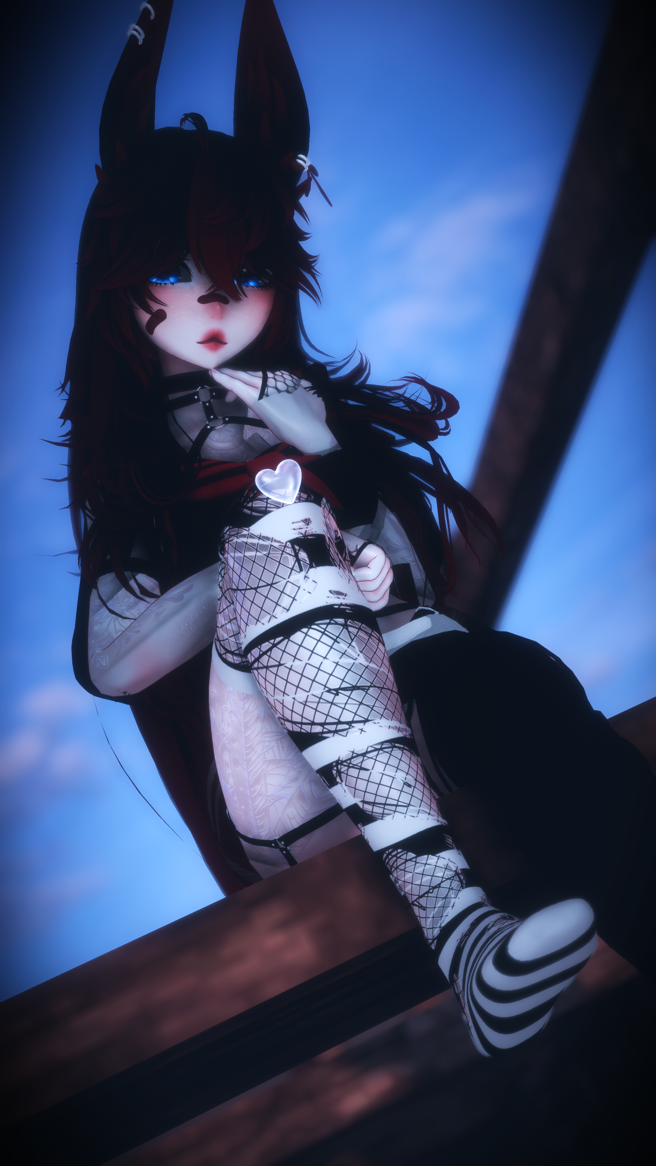 Items: Vape (Works! put to your mouth to use), Knife (Grabbable, hold in your mouth or hands), Paw flow toys, Bunny Plushie, Flower Basket, Inner Heart, Gesture emotes (Facial addons with hand gestures), Likes Counter (boop the nose to like!)