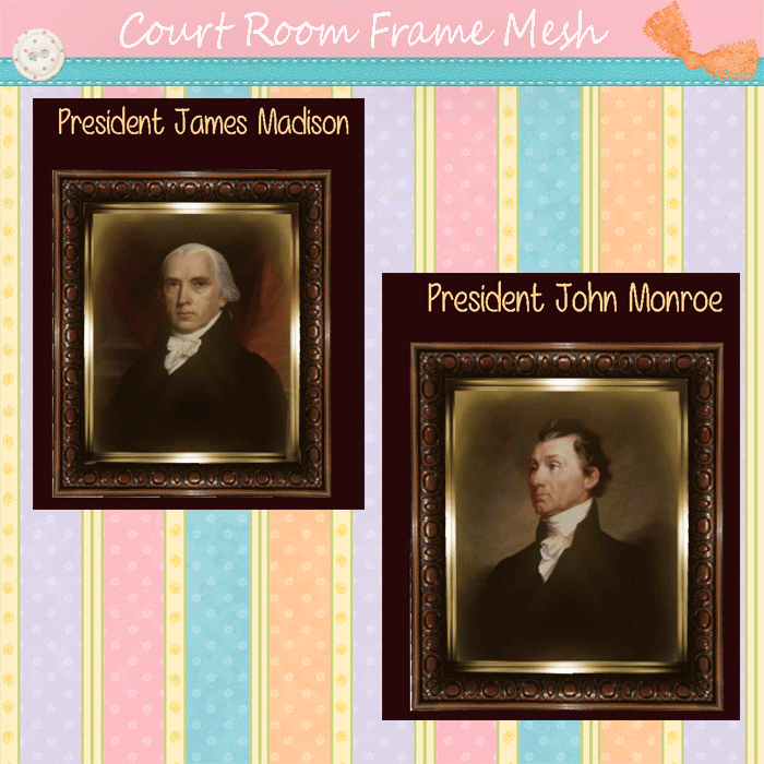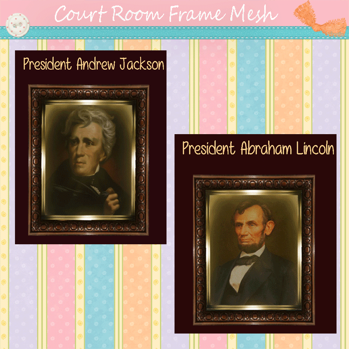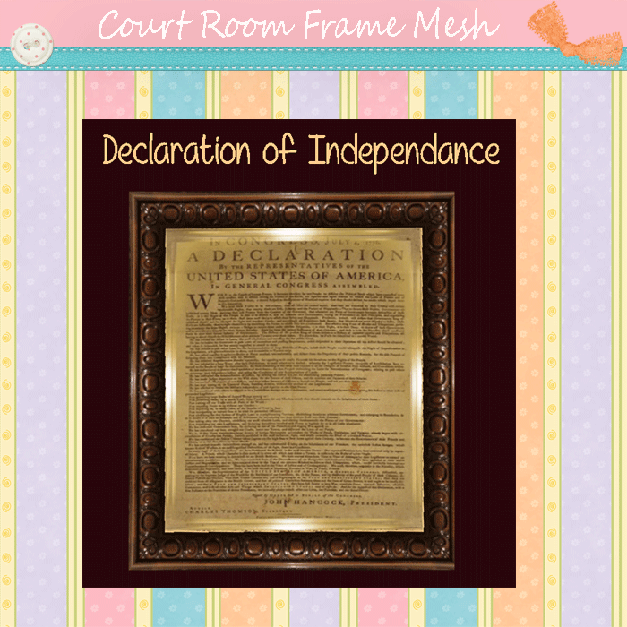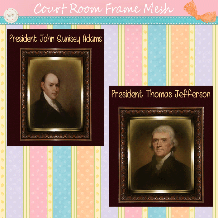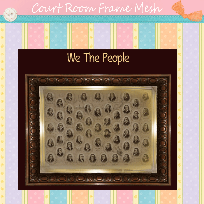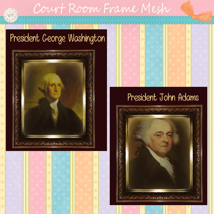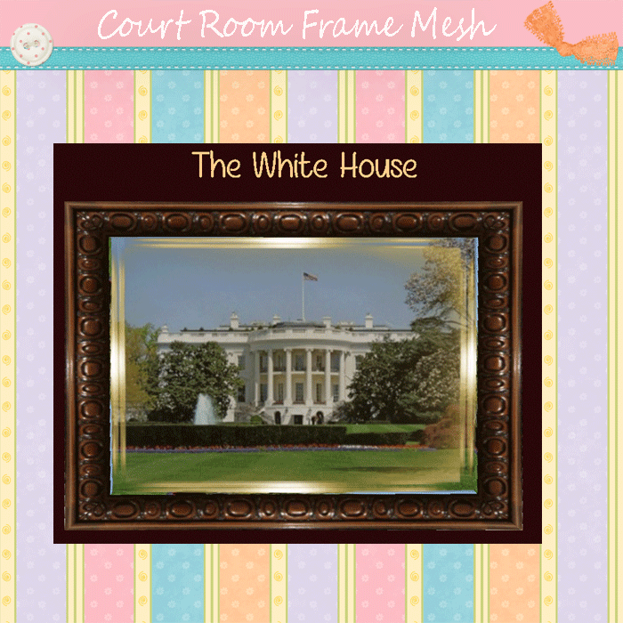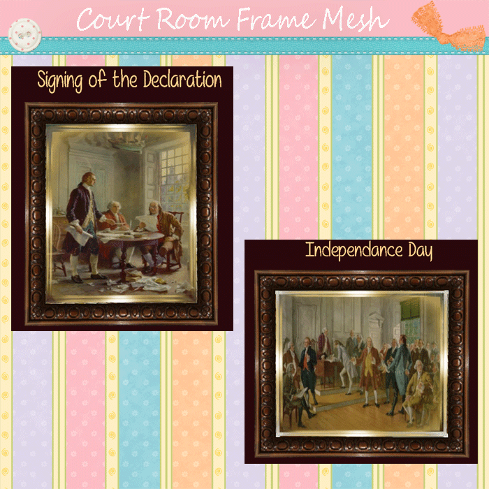 Included: You will find one Frame Mesh with 13 Textures to be added to the Court Room Mesh. Eight Presidents, The White House, The Declaration of Independance, We The People, Independance day, and Signing if the Declaration, plus decorative frame textures.