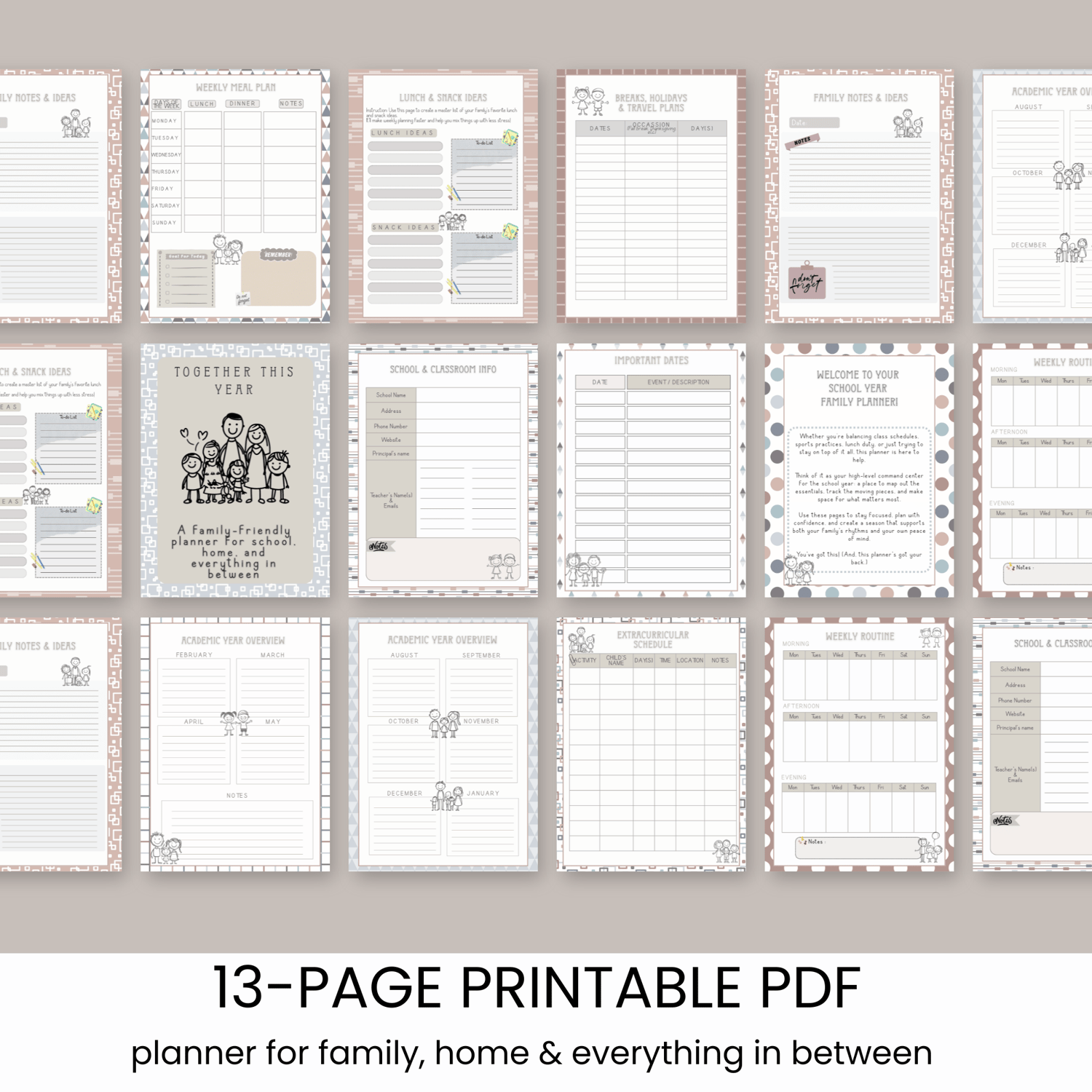 This 14-page printable is designed to help busy households stay organized from the first day of school through summer break. With simple pages for schedules, routines, meals, and important school details, it keeps everything in one place - so you can focus on family time instead of scrambling to remember what’s next.