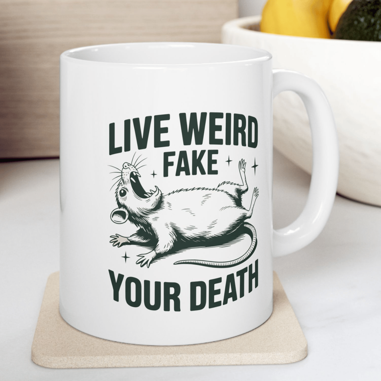 Live Weird Fake Your Death Opossum Funny Sarcastic Coffee Mug