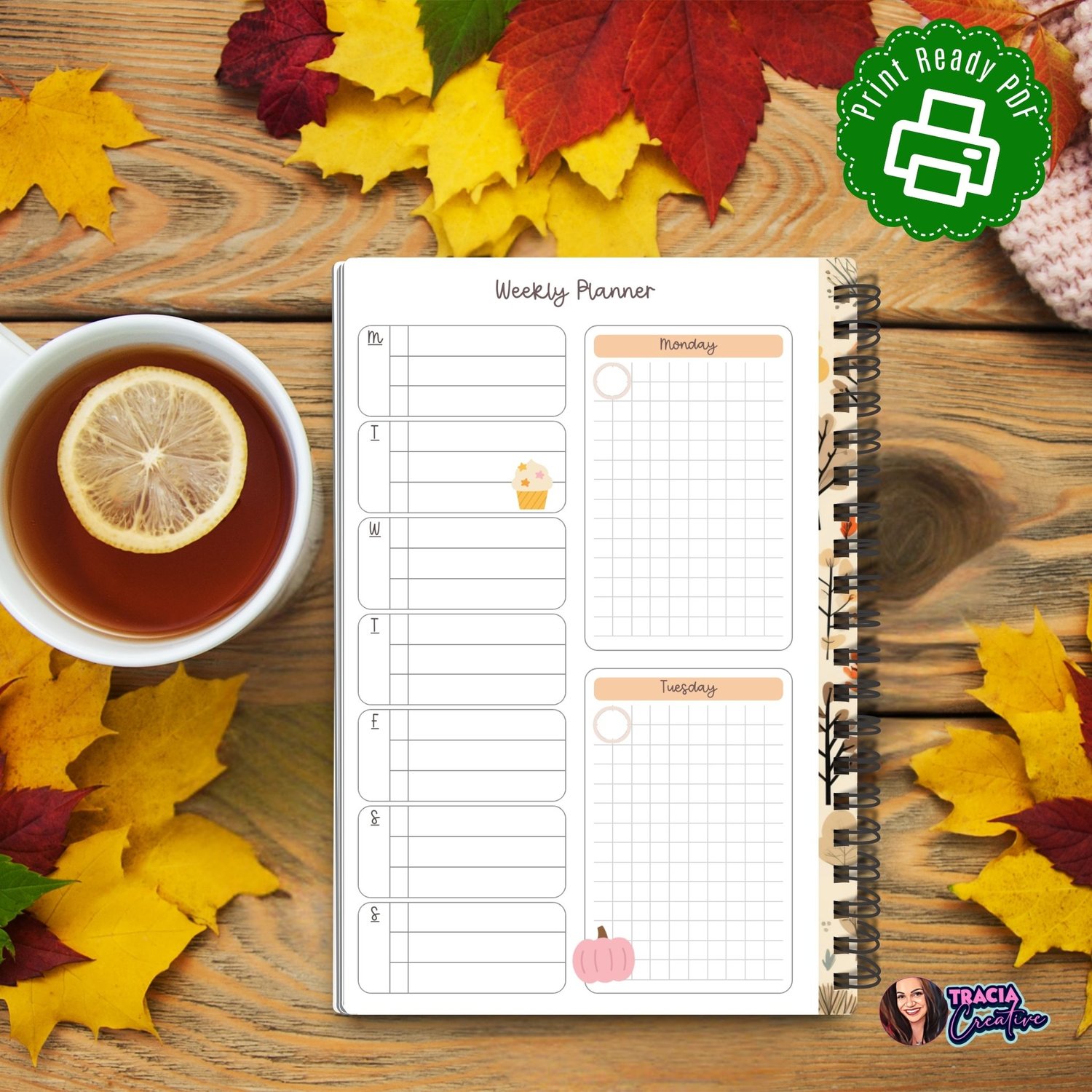 This charming printable weekly planner insert is designed to help you stay organized and focused on what matters most. With its A5 size paper and stunning fall design, you'll love planning your week ahead. Plus, it's an instant download, so you can start using it right away!