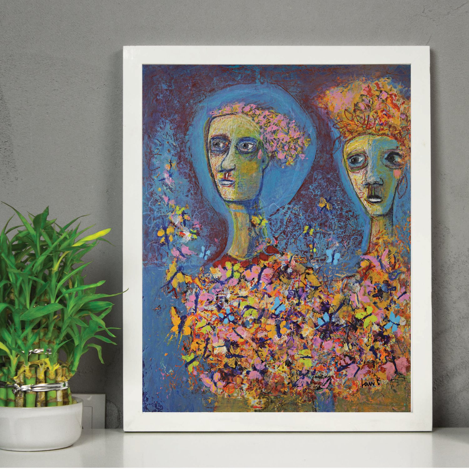 Any painting often makes a great conversation starter since many people can relate to and appreciate them. My paintings are all originals from a vivid color palette and creativity. Owing to my long-term experience as a portrait photographer, I always incorporate a human aspect into my work, even in my non-objective abstracts.