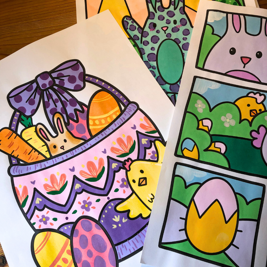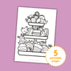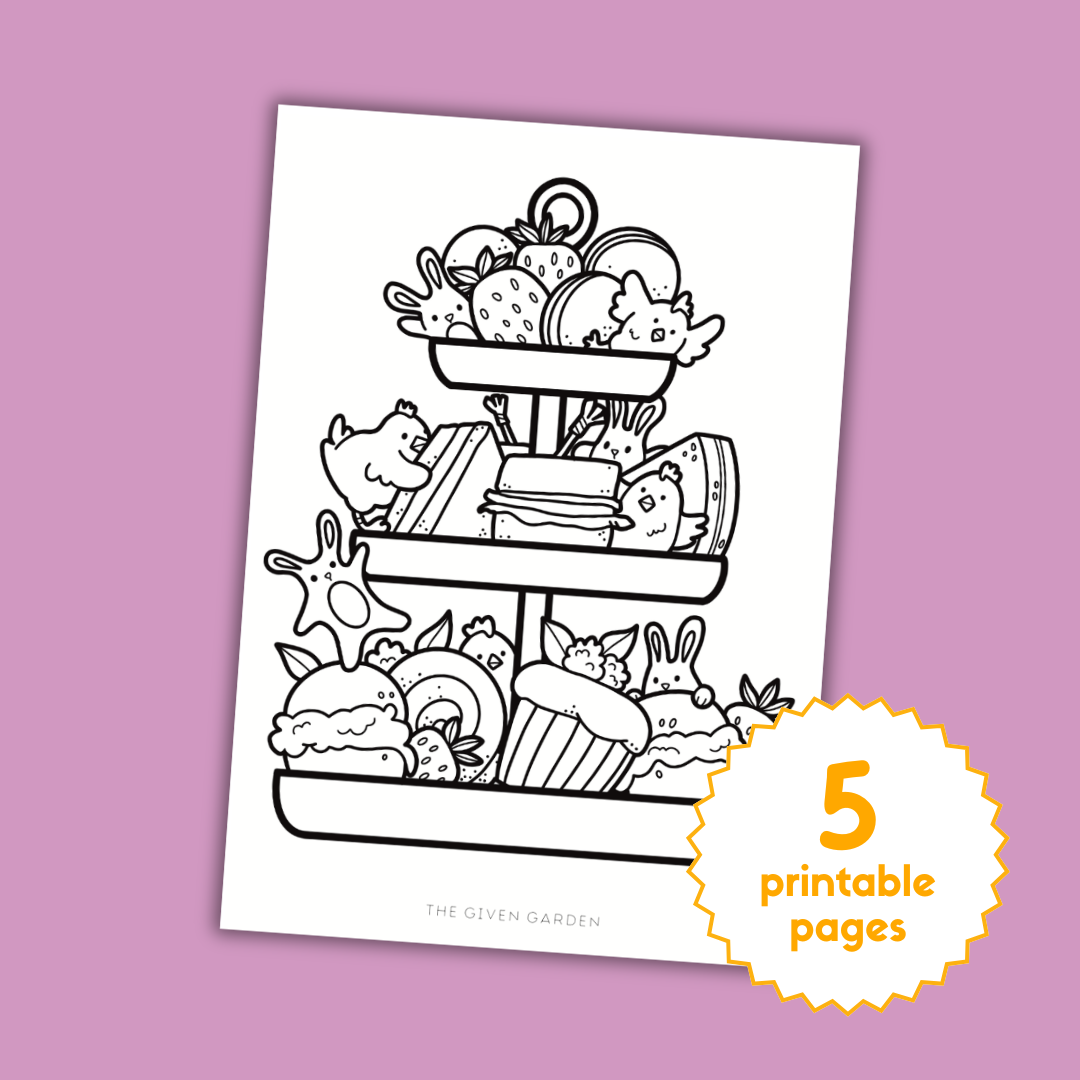 Bunny and Chich are heading to the Easter egg hunt and Easter afternoon tea with their friends. Join them in this bundle of 5 printable colouring pages.
