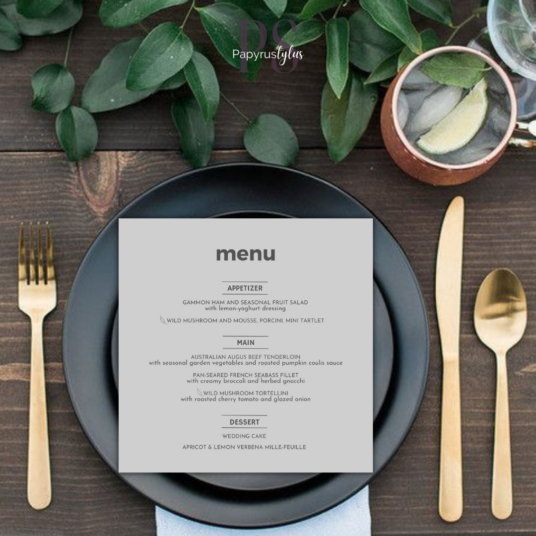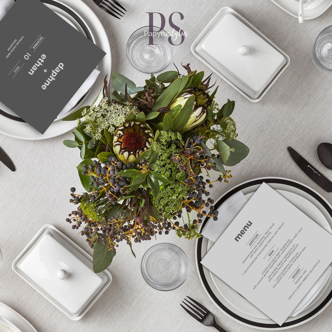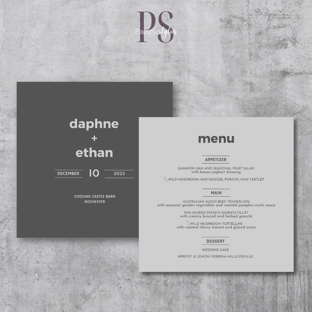 DAPHNE Minimalist Wedding Menu Template | SLATE BLACK