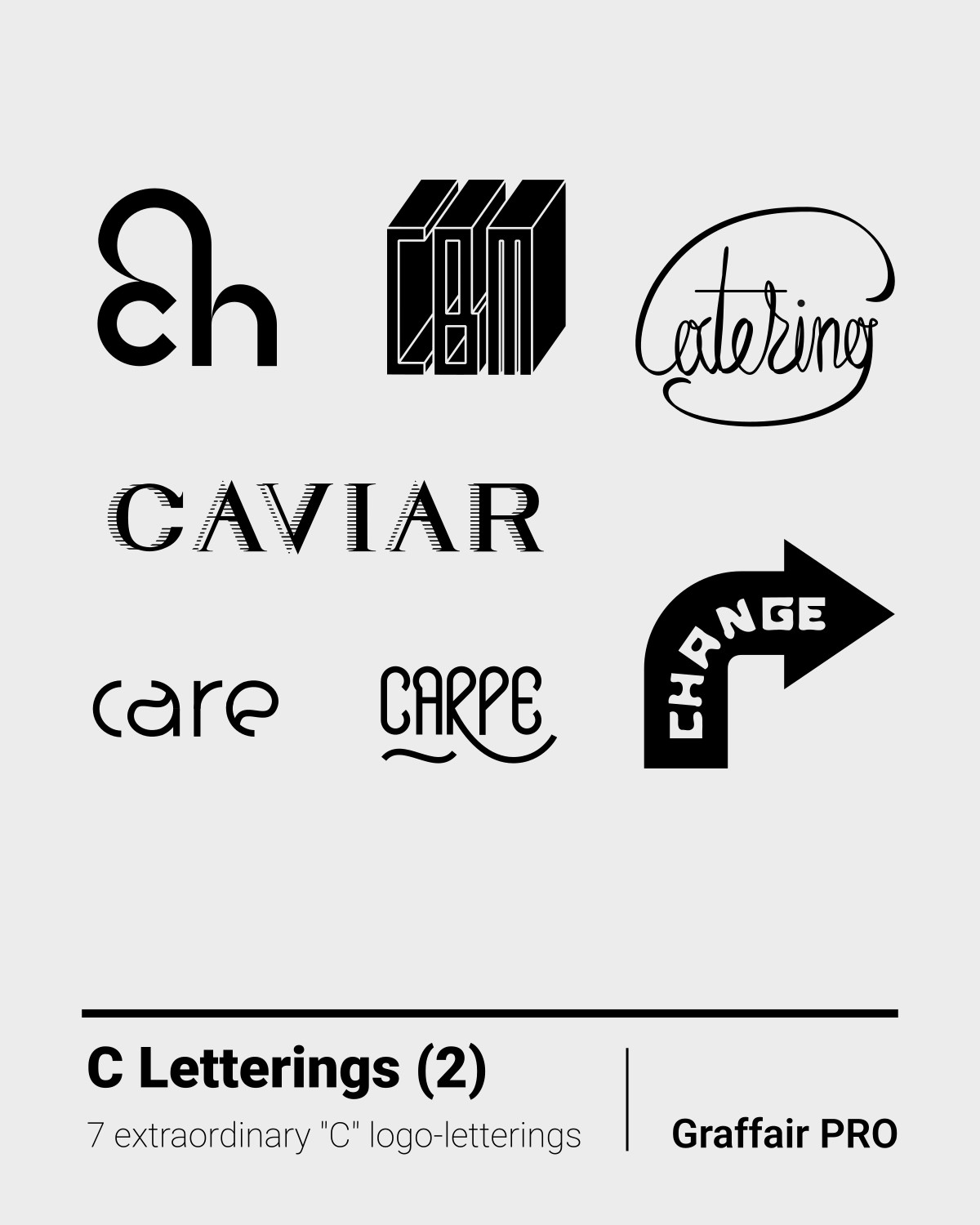 C Letterings (2): The second set of "C" logo/letterings with 7 original designs. These letterings are included among 800 other extraordinary ones in the "800 SVG Letterings" bundle edition.