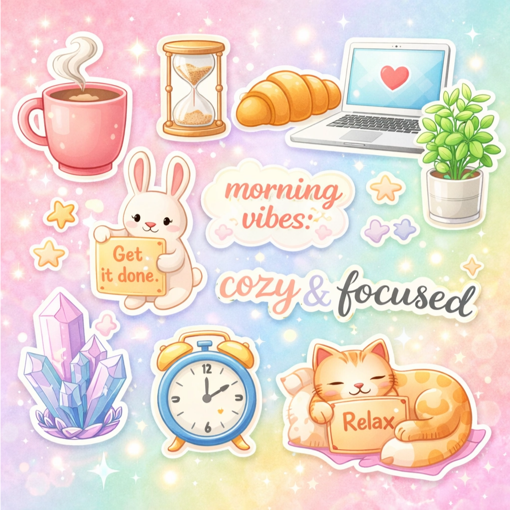 Cozy & Aesthetic Productivity Sticker Pack: 50 Digital Stickers for Planners & Journaling