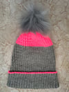 Bona Yarns Neon Lights Gradient, fingering weight yarn [CYCA 1] mini skein (20 g/0.70 oz, 85 m/93 yds, 75% Superwash Merino, 25% Nylon) – for the gray and pink hat 1 mini skein in Hot Damn! (CC);