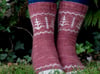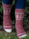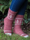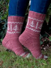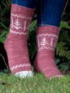 The Autumn Fern Socks embrace the beauty of ferns and nature during the transition to cooler weather. These cosy socks are written for cuff down construction, and feature engaging colorwork motifs of ferns and fronds wrapping themselves around the leg and foot.
