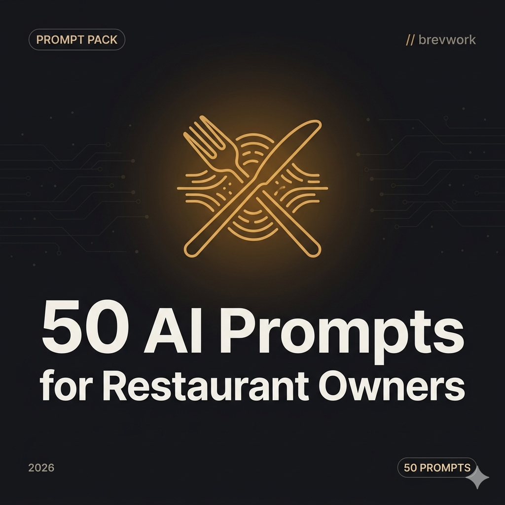 50 AI prompts built for restaurant owners, cafe managers, and food truck operators. Menus, social posts, review responses, event promos — done.