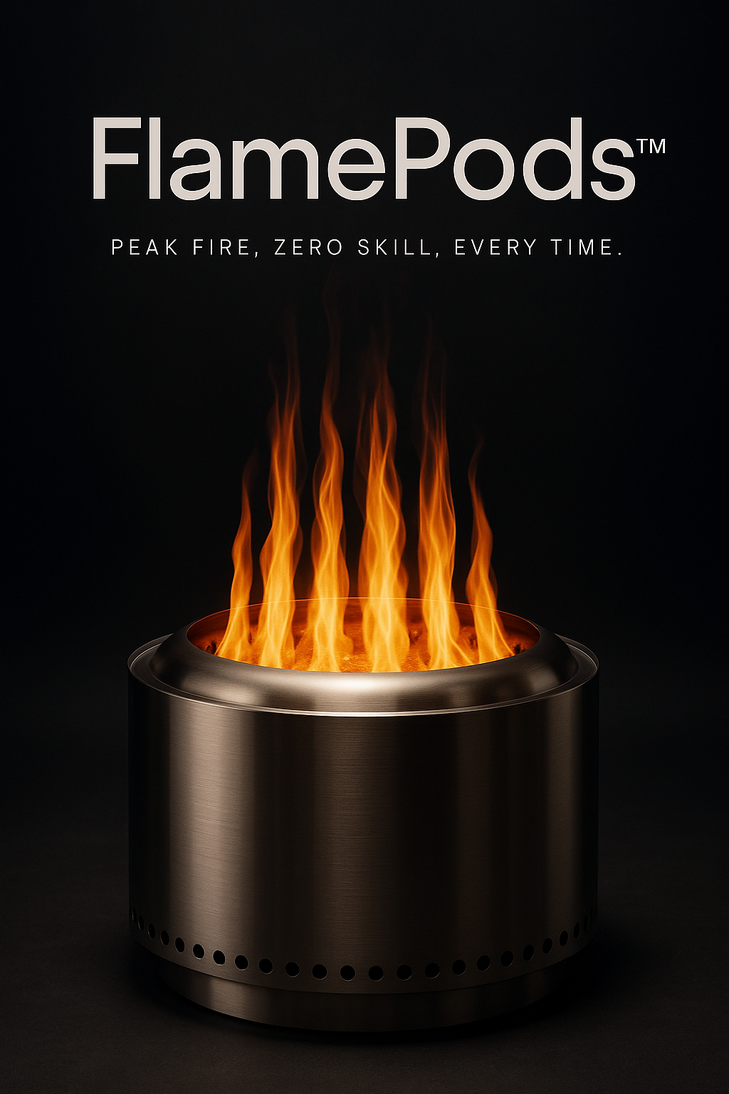 FlamePods™ abstracts the complexity of fluid dynamics into a consumable hierarchy, effectively offloading the "skill tree" of fire management into a pre-engineered wood stack. By defining the "sad soup" fire as a systemic failure rather than a user error, the IP weaponizes the "gearhead" desire for optimization to convert sporadic hardware owners into high-retention software subscribers. This is the industrialization of the sublime—a "portal mode" guarantee sold as a recurring service.