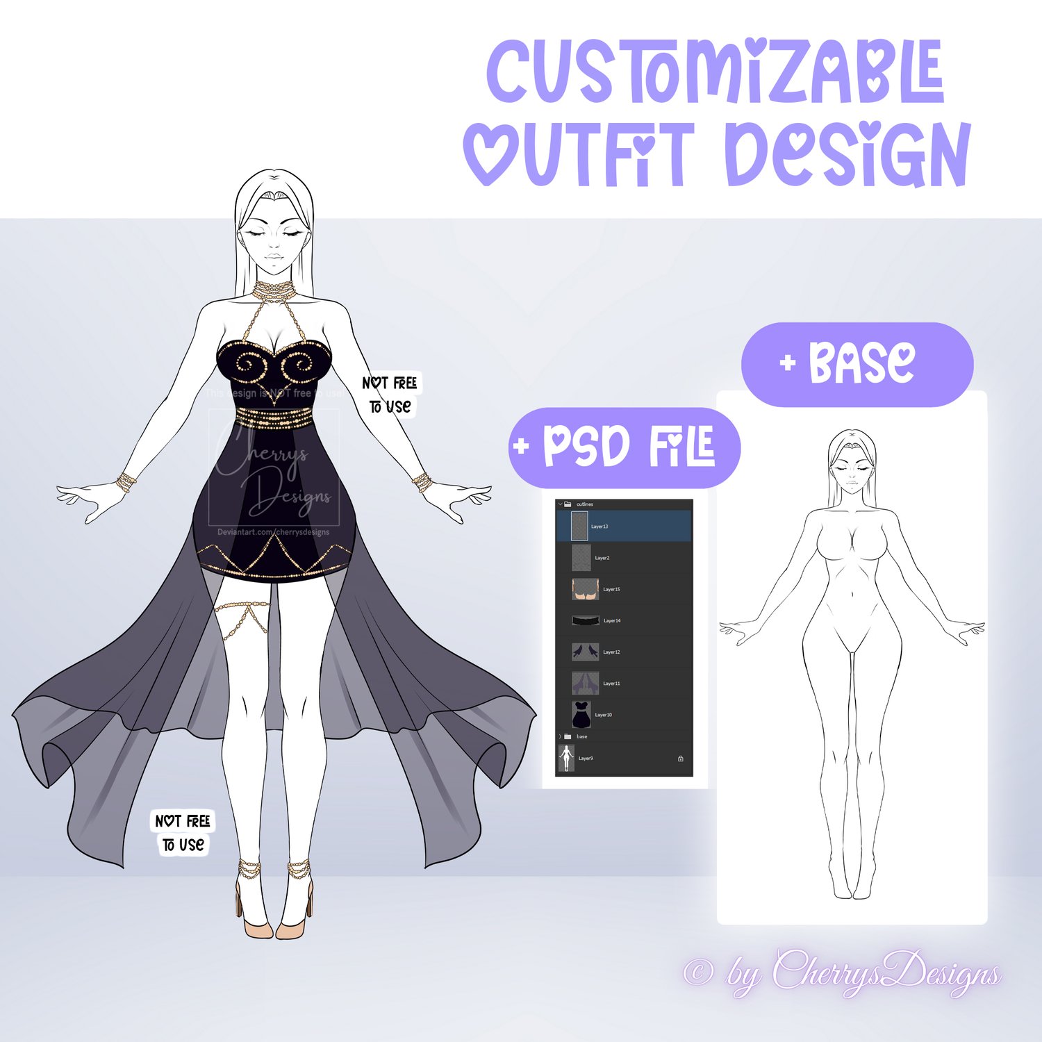 Please note:Â As it applies to all other customizable designs, there is nothing below the layer of the outfit, I erase all the lines underneath to have one single line art, not separated between character and outfit.