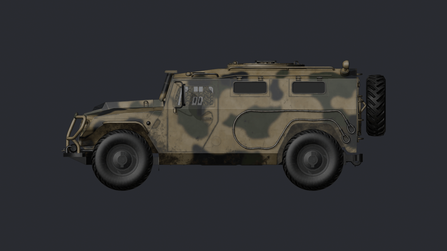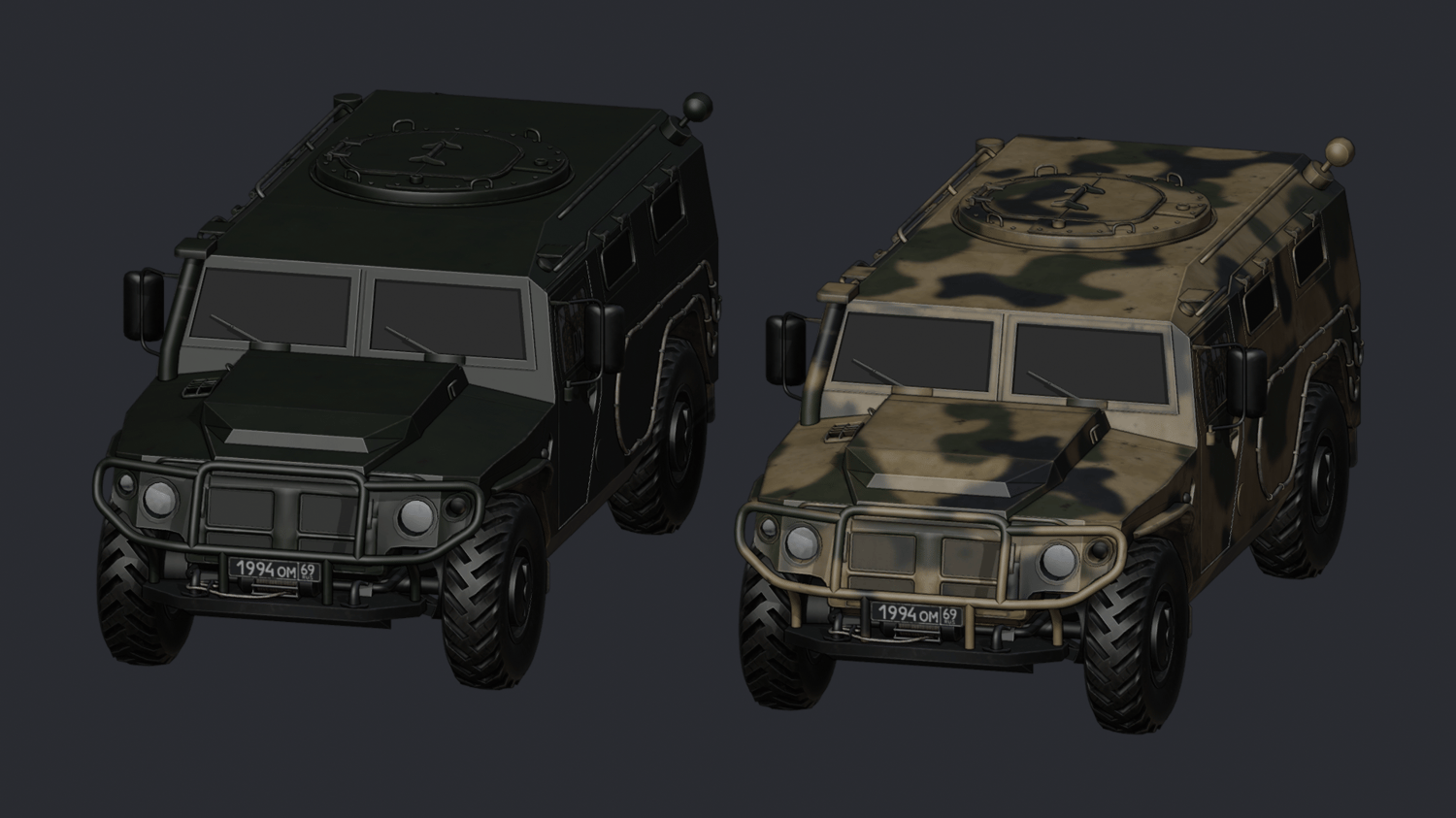 The GAZ Tigr (Tiger) is a Russian made, multi purpose, all terrain infantry mobility vehicle known for its resemblance to the American Humvee. It is designed to transport personnel and various military equipment, and its armored variants provide protection against small arms fire and improvised explosive devices.