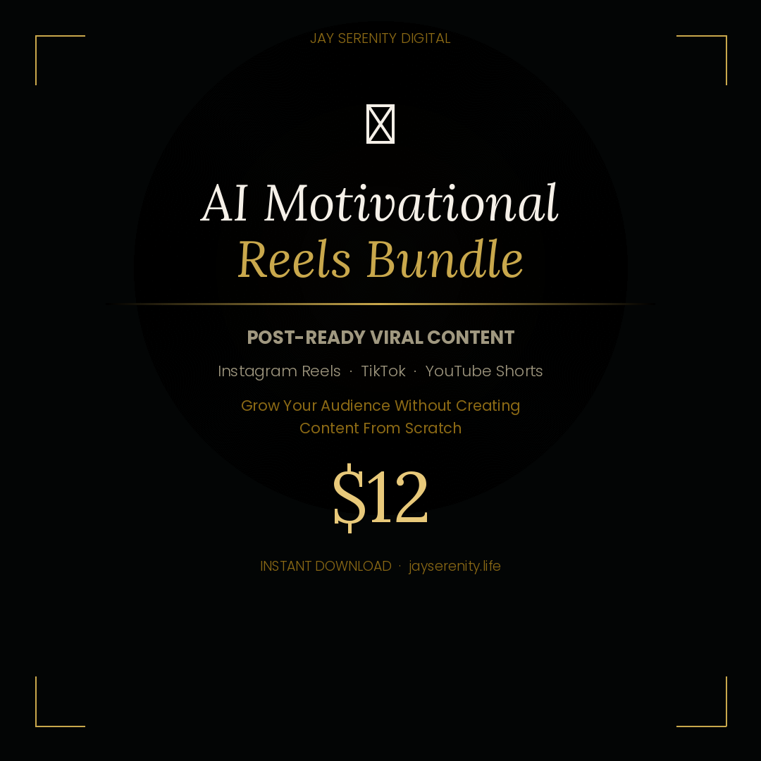 Pre-made AI-generated motivational video reels ready to post on Instagram, TikTok, and YouTube Shorts. Grow your social media following and engagement without spending hours creating content. Just download, post, and watch your audience grow.