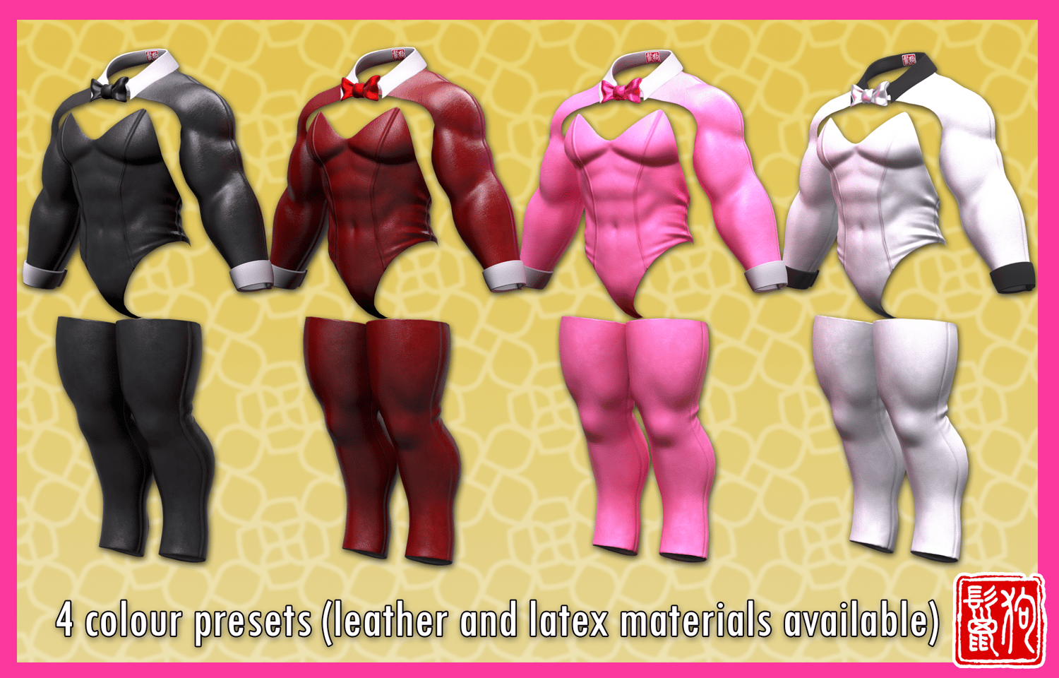 - There's two versions of each preset material, "Muscular" and "Smooth". "Muscular" has muscle definition on the bunny suit, "Smooth" has the abs and arm muscles smoothed out for a less muscular look. Choose whichever you that fits your avatar most!