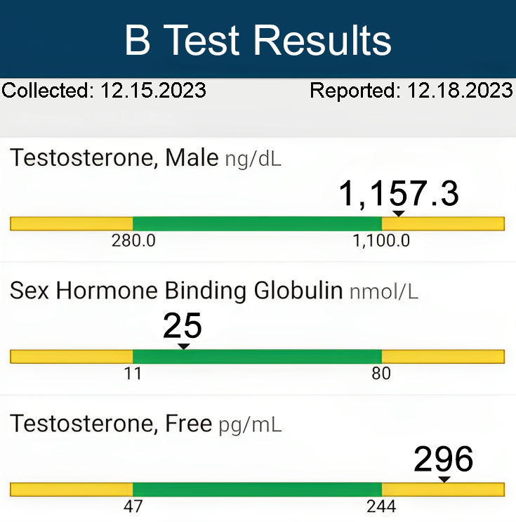 I left you guys photos of the bloodwork HERE. Keep in mind that he was only playing football on the weekends—nothing more. The amount of body fat burned and muscle mass gained due to the testosterone increase is dreamlike.