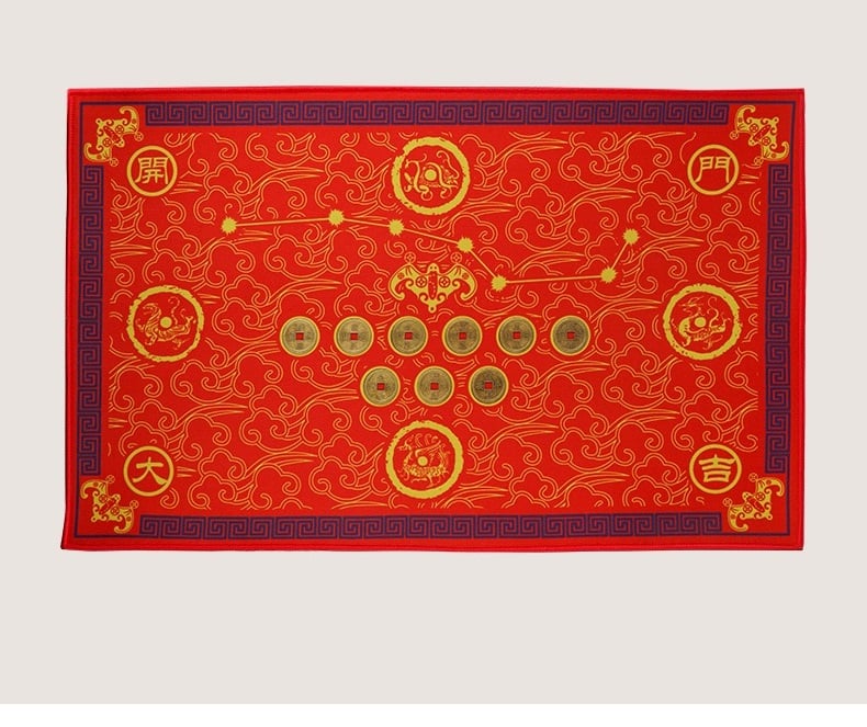 This Feng Shui Power Mat is an elegant and powerful tool designed to attract positive energy and bring balance into your home or office. Featuring a harmonious combination of traditional Feng Shui symbols, including the Seven-Star Pattern, Bats, Six Emperor Coins, Auspicious Cloud Pattern, and the four legendary creatures—Green Dragon, White Tiger, Vermilion Bird, and Black Tortoise—this mat serves as both a functional and visually striking piece of decor. Perfect for enhancing prosperity, good fortune, and protection, it is a must-have for those seeking to improve their environment and attract positive energies.