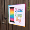 Everyone needs to be reminded to make time to be creative, right? It’s so good for our wellbeing to be creative every day. So having this mini quilt on your wall can serve as a daily reminder! This mini quilt consists of a Foundation Paper Pieced Pattern (the spool), regular piecing and raw edge appliqué (the letters). This pattern will assume you know how to foundation paper piece and will include the pattern pieces for this, for the thread spool. It provides dimensions for the mini quilt, plus an option for a cushion. It provides templates for the words and the FPP pattern.